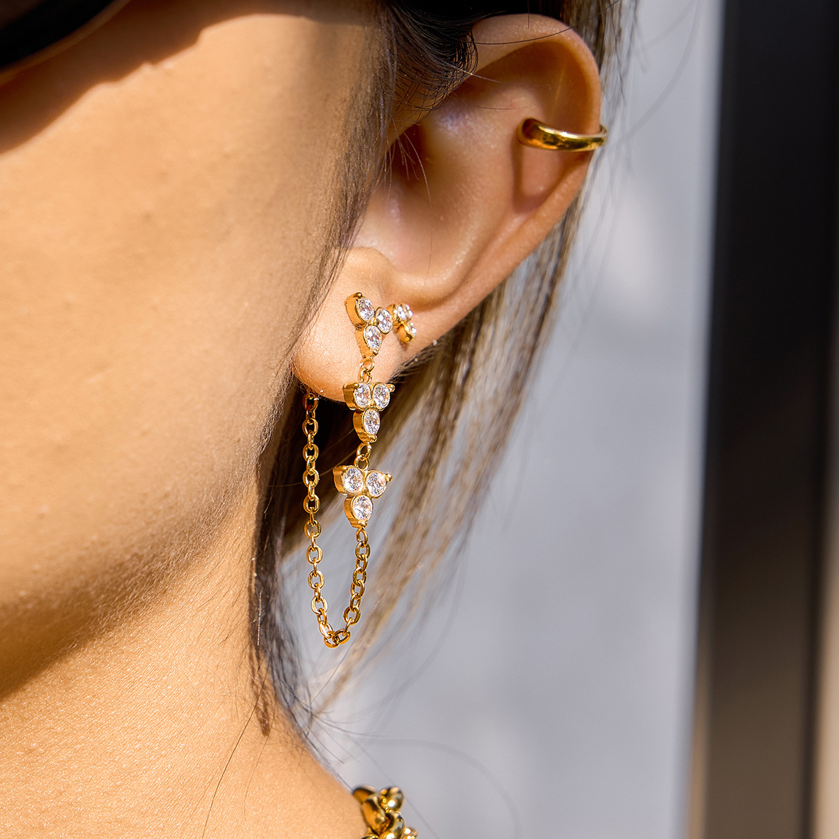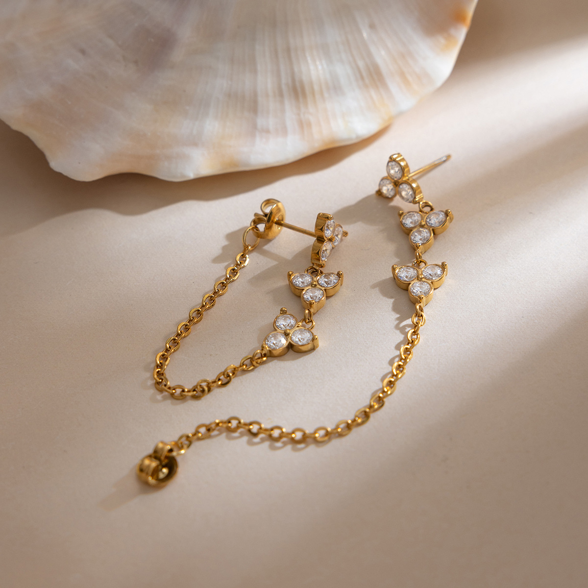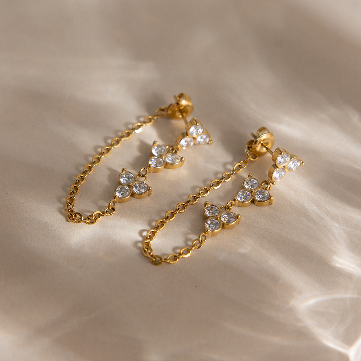 Titanium Steel 18K White Zircon Flower Chain Tassel Earrings For Women