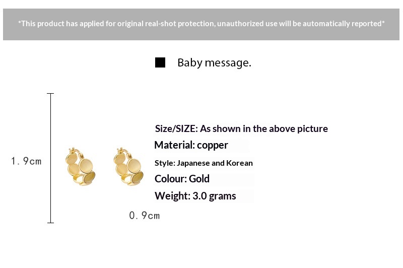 Product information:Processing Technique: Electroplating Color: E6556 Gold Target Audience: Women Material: Copper Design: Geometric Trendy Element: Circular Style: Light Luxury Style Packing list:...