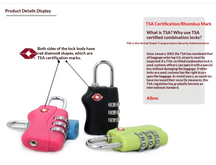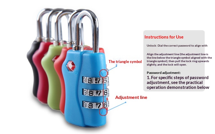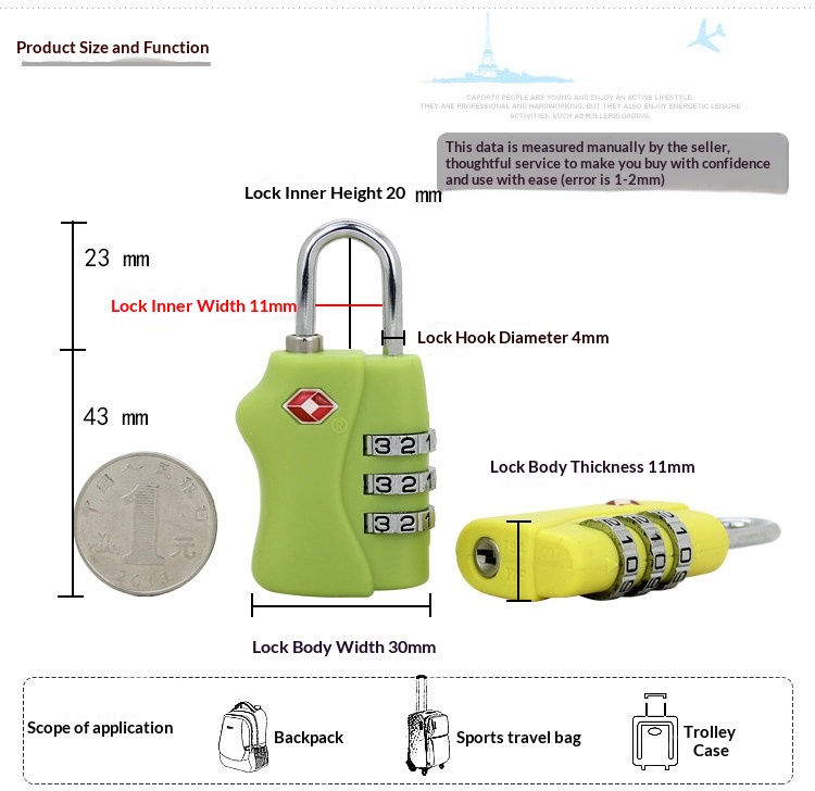 Product information:Applicable use: For travel Colors: Black, red, apple green, blue, rose red, yellow Material: ABS Packing list: 1* Lock Product Image: