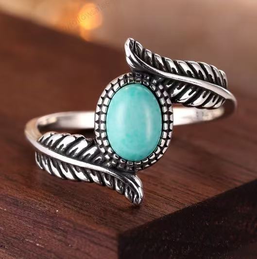Turquoise-Inlaid Feather Color-Blocked Party Engagement Ring Jewelry Piece