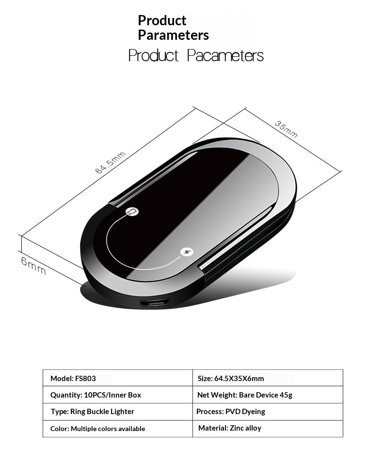 Product information:Type: Ring-style cigarette lighter Process: PVD infiltration Dimensions: 64.5 x 35 x 6 mm Material: Zinc alloy Packing list: Electronic cigarette lighter * 1 Product Image:...