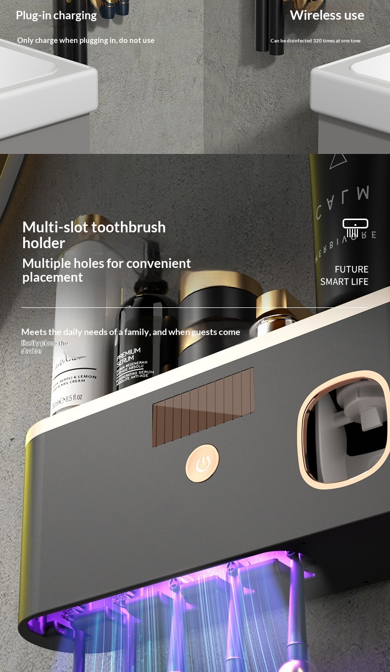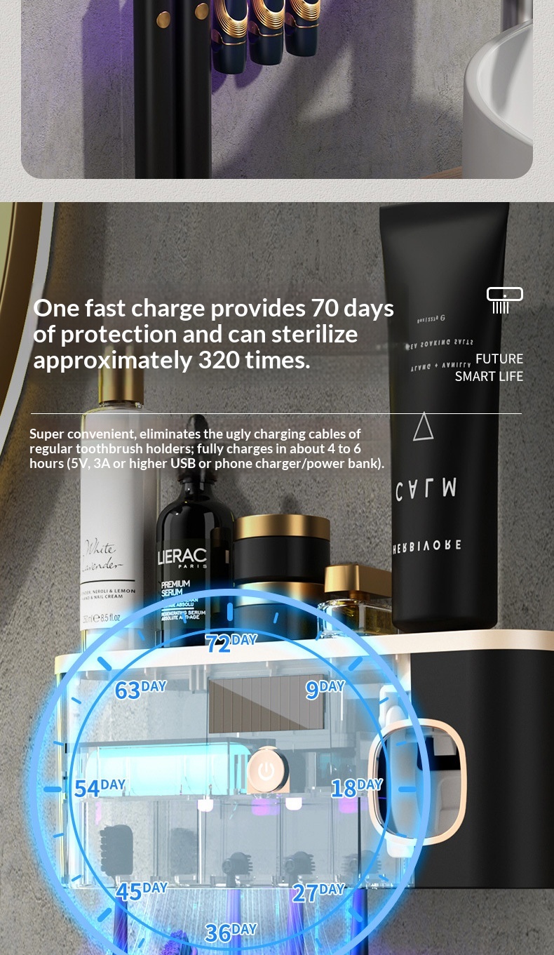 Ultraviolet Sterilizing Wall-Mounted Smart Toothbrush Disinfector