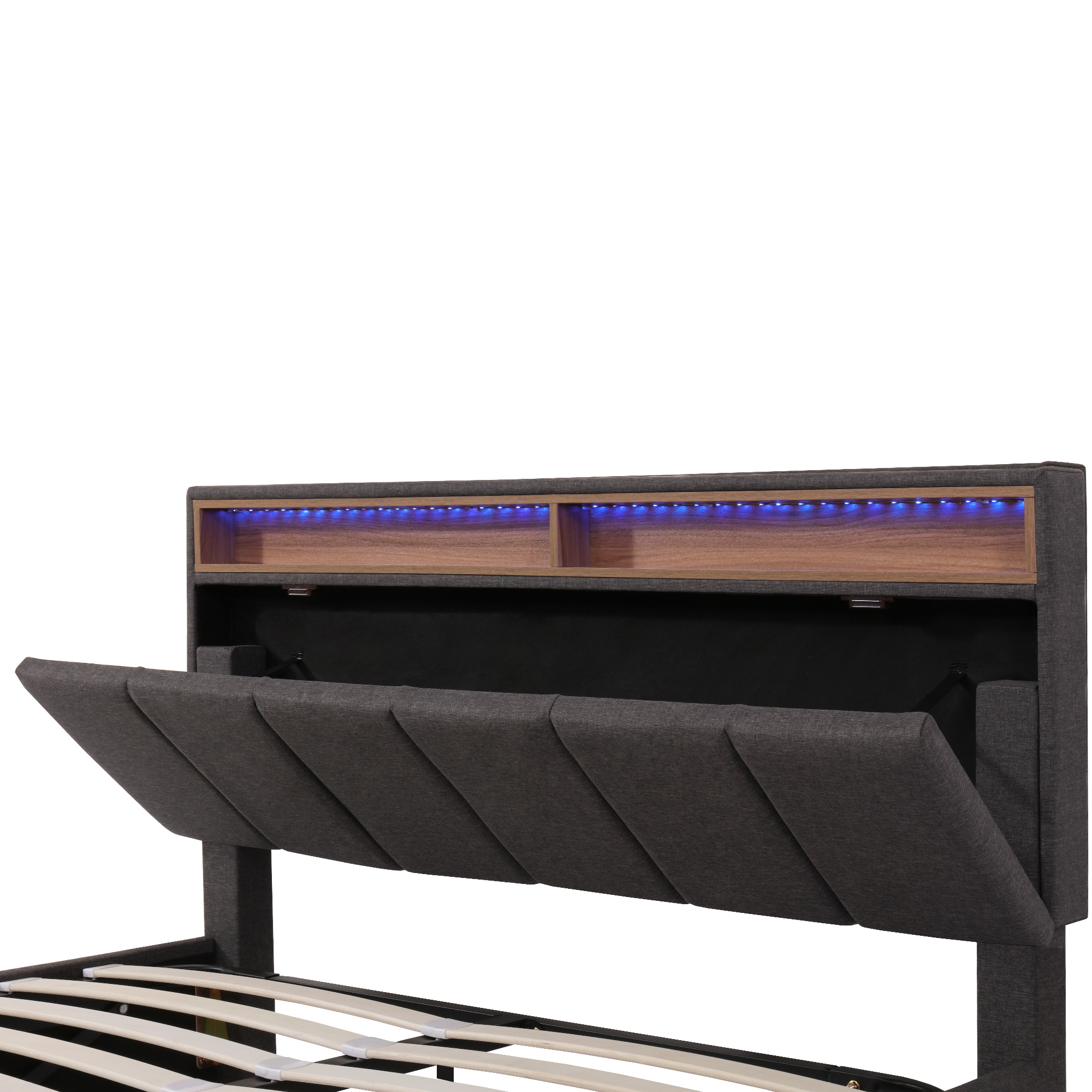 - LED-lit headboard: The headboard serves as a comfortable backrest for reading or watching TV. LED lighting provides pleasant light, and you can conveniently adjust the brightness and color via remote control.