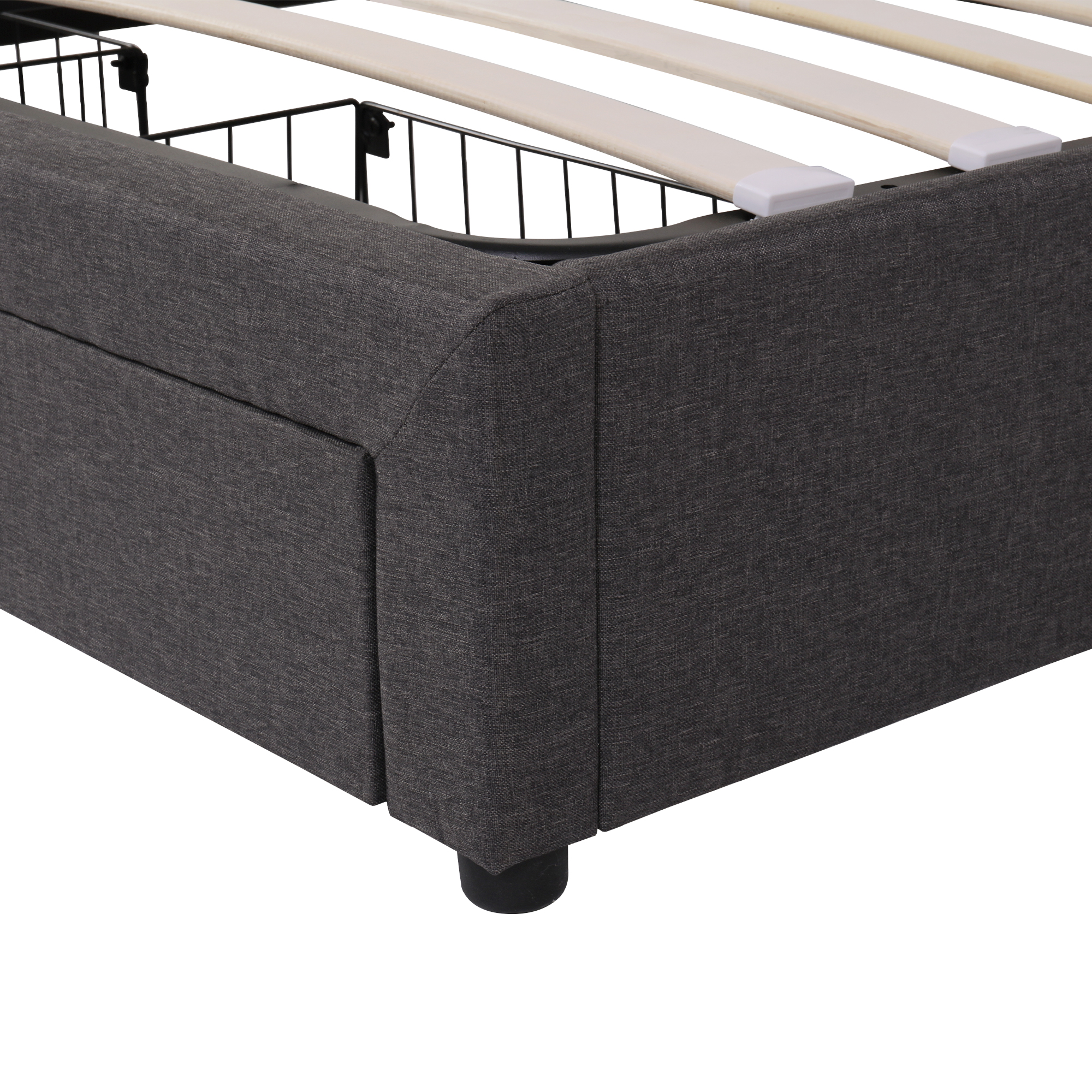 Product Name:Upholstered bed with LED lighting, double bed-4ft6 (135*190cm), hydraulic storage bed with bed box, drawers and storage compartments, stowable foam headboard, double bed with steel frame, linen, grey