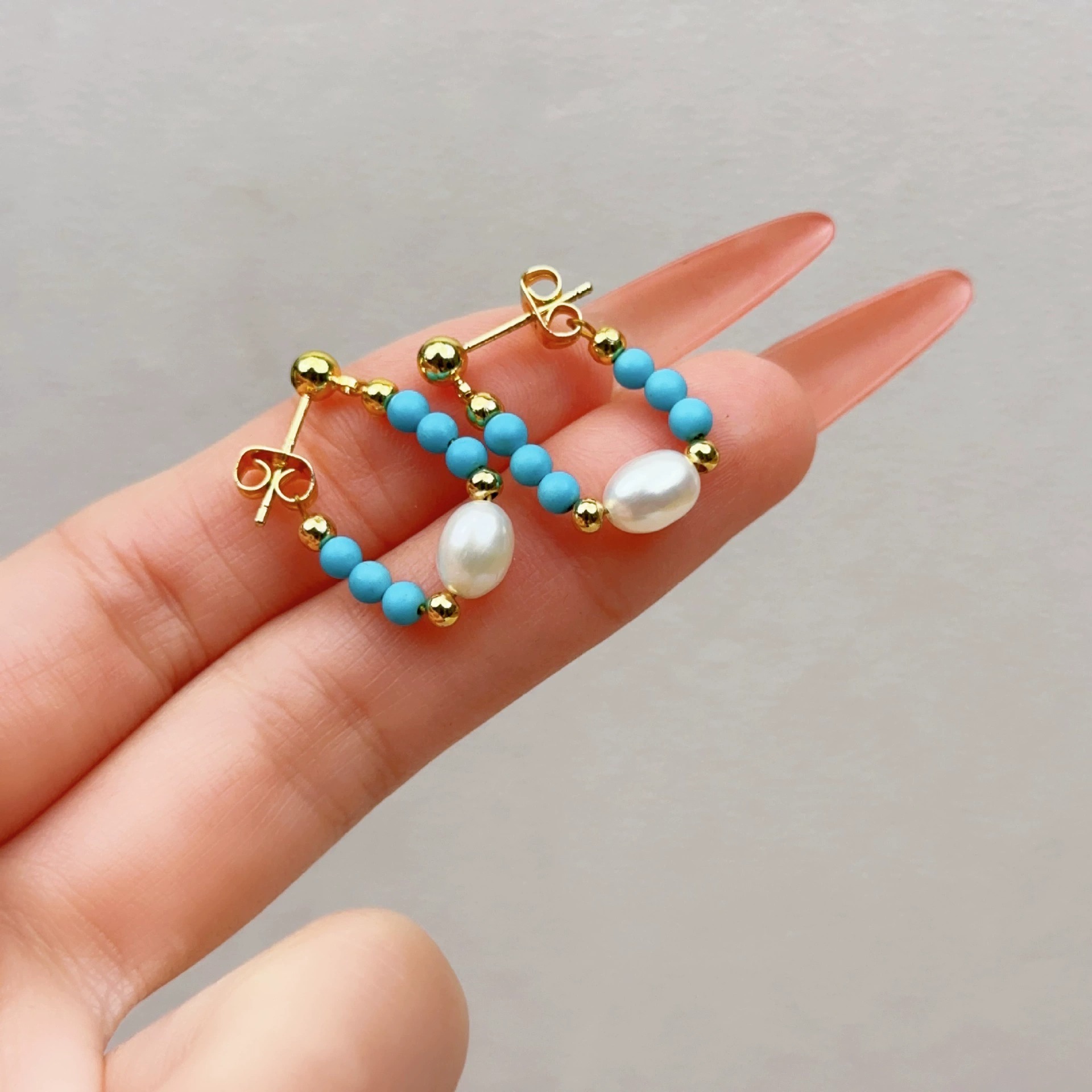 Color: Turquoise Pearl Stud Earrings