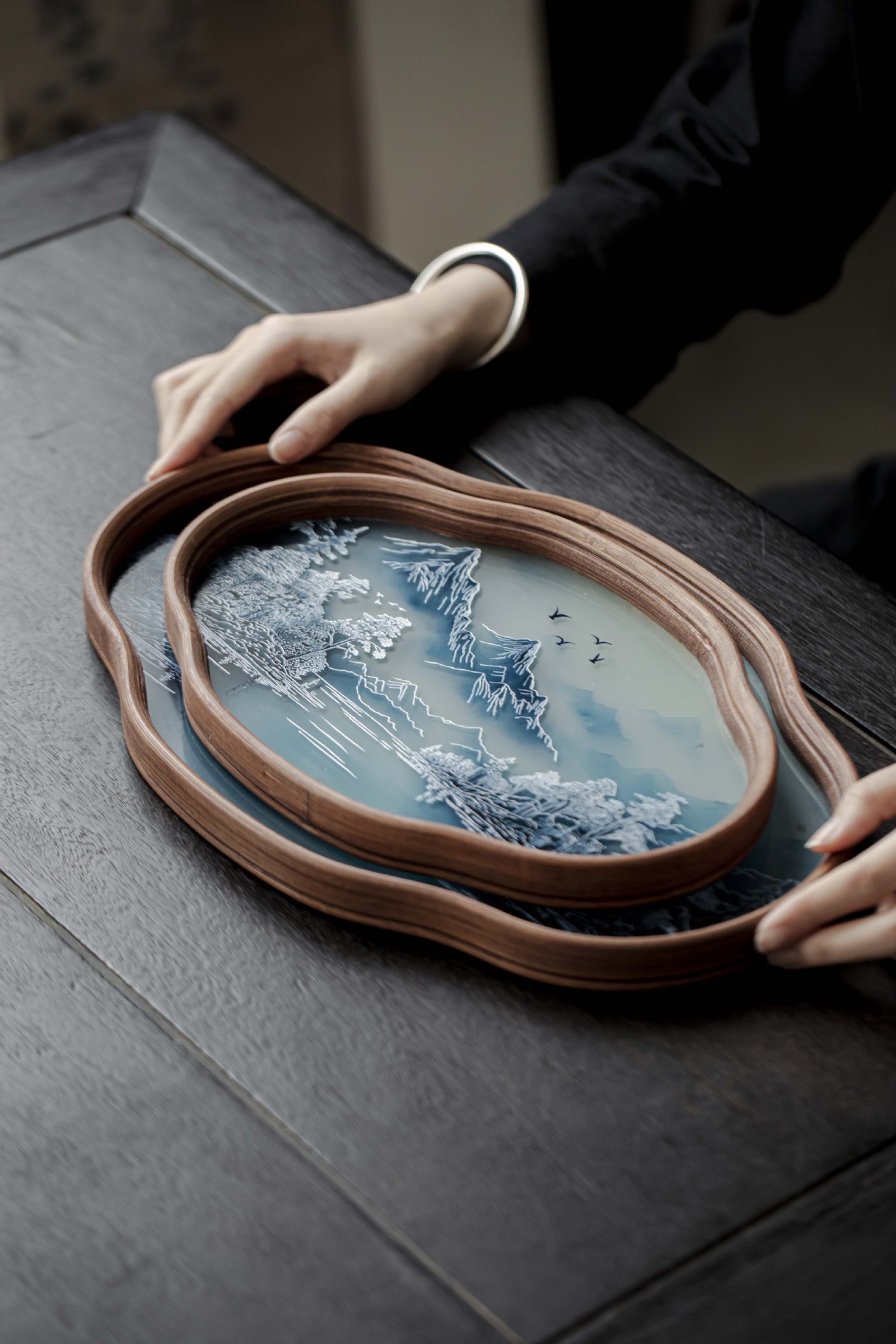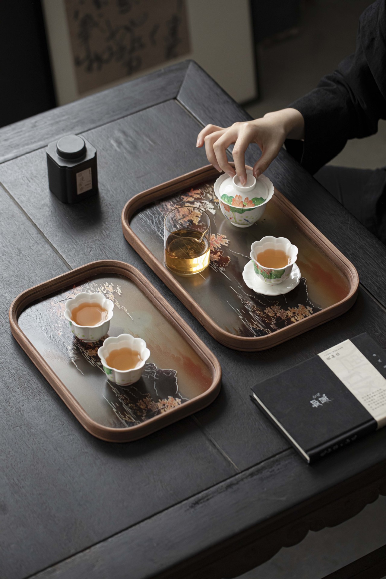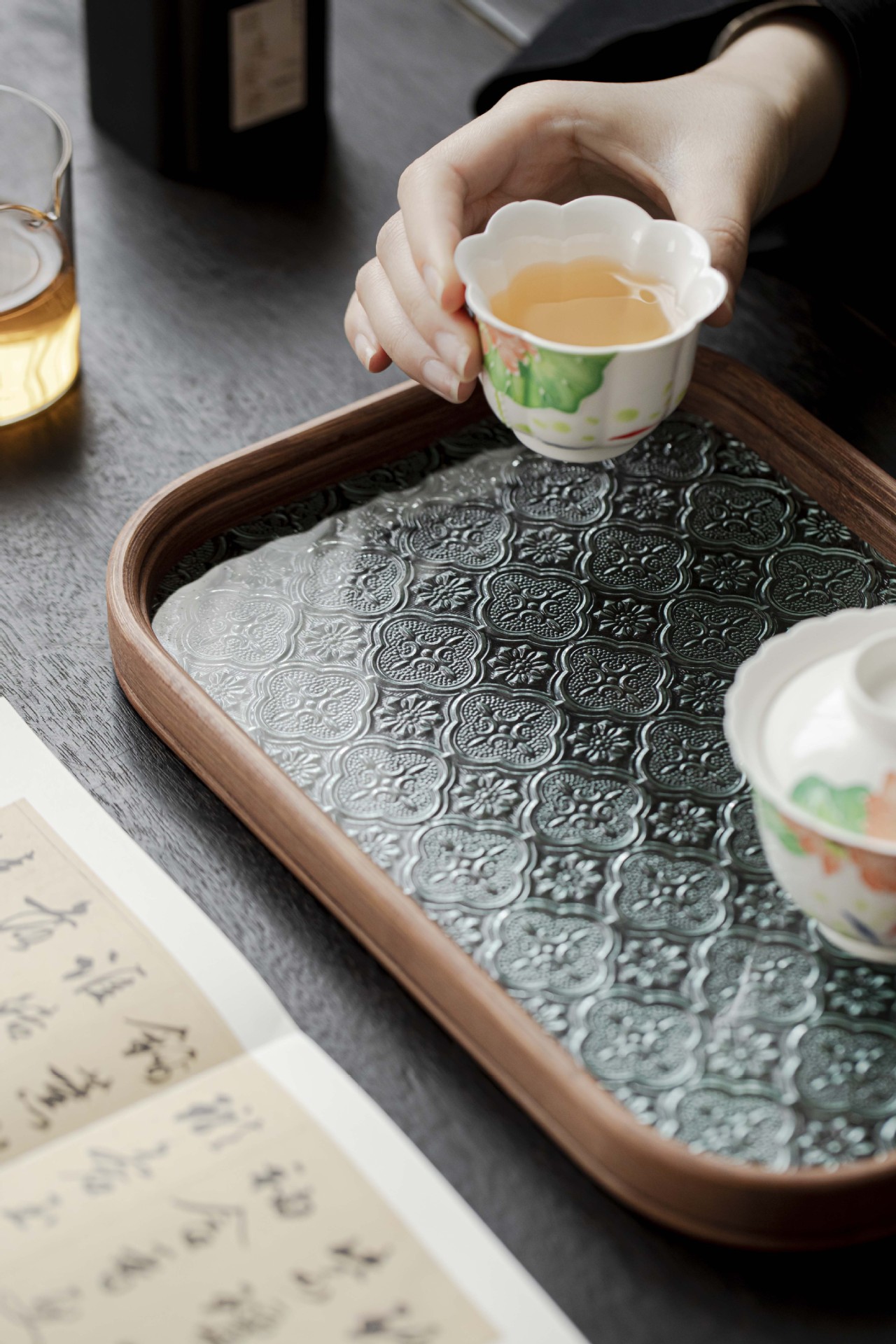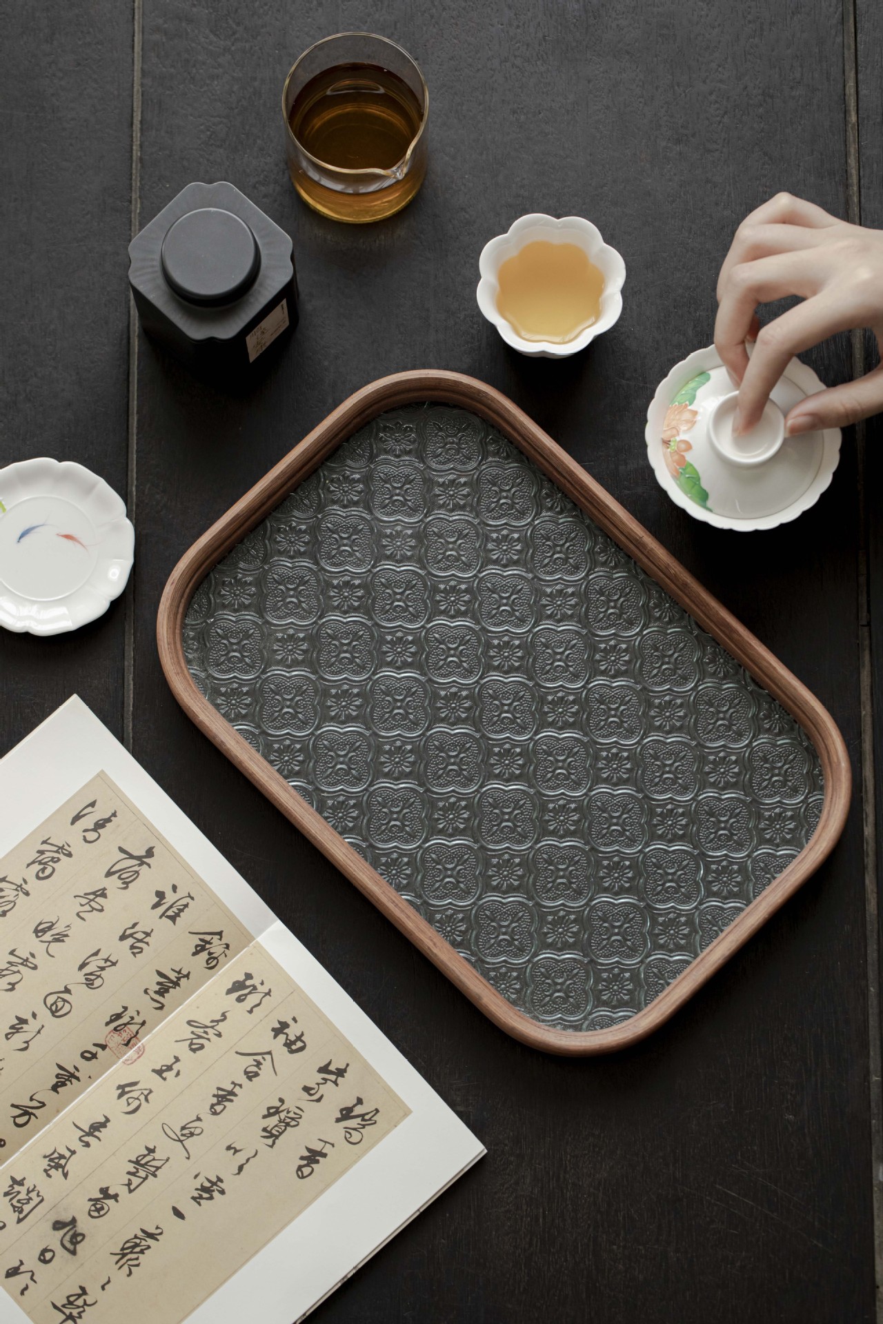 Colors: Glass-Hawthorn-Tray-Transparent (Small), Glass-Hawthorn-Tray-Jade Green (Small), Glass-Hawthorn-Tray-Transparent (Large), Glass-Hawthorn-Tray-Emerald Green (Large), Round-Square Glass Tray (Small), Round-Square Glass Tray (Large), Hanjiang Snowflake Glass Hawthorn Tray (Small), Hanjiang Snowflake Glass Hawthorn Tray (Large), Distant Mountains-Rounded-Rectangle Tray (Small), Distant Mountains-Rounded-Rectangular Tray (Large), Hydrangea-Hawthorn Teapot Stand (Small), A Thousand Miles of Rivers and Mountains-Hawthorn Teapot Stand (Small), Hydrangea-Hawthorn Teapot Stand (Large), A Thousand Miles of Rivers and Mountains-Hawthorn Teapot Stand (Large)