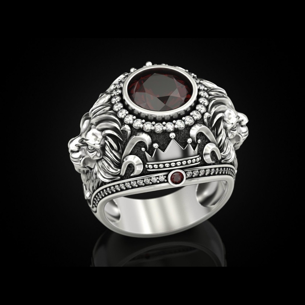 Vintage Mens Ring In Alloy Featuring A Lion Design With Diamond Accents