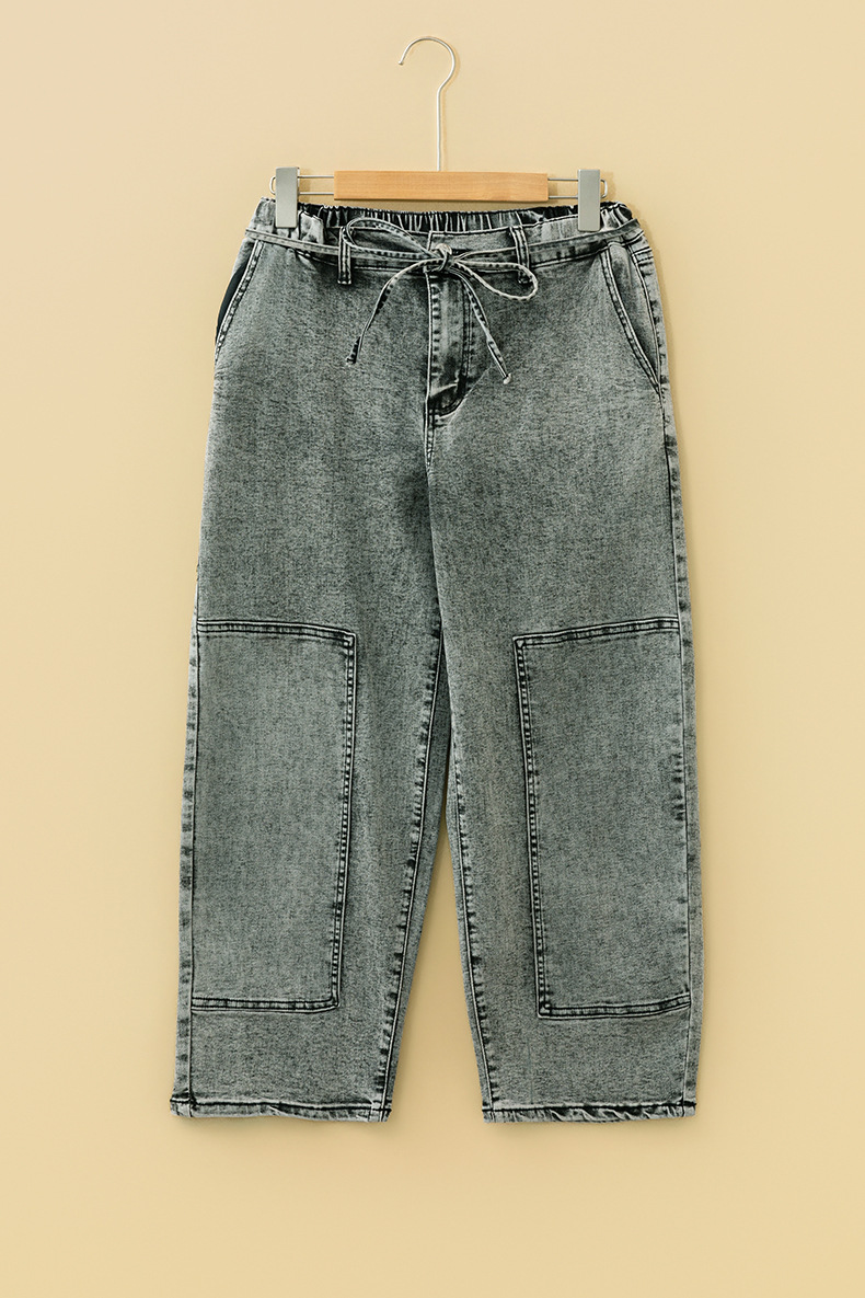 Washable Straight-leg Pants With Multiple Pockets And A Drawstring