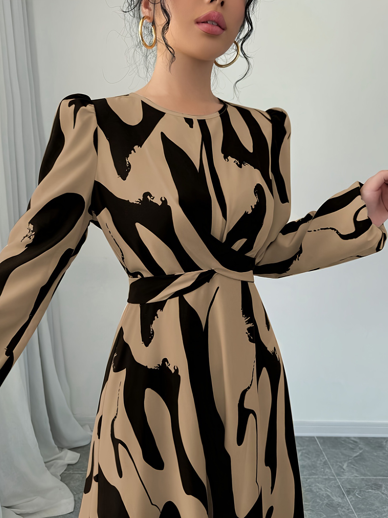 Womens Asymmetrical Printed Tie Bow-Detailed Elastic-Cuff Casual Resort Maxi Dress For Women