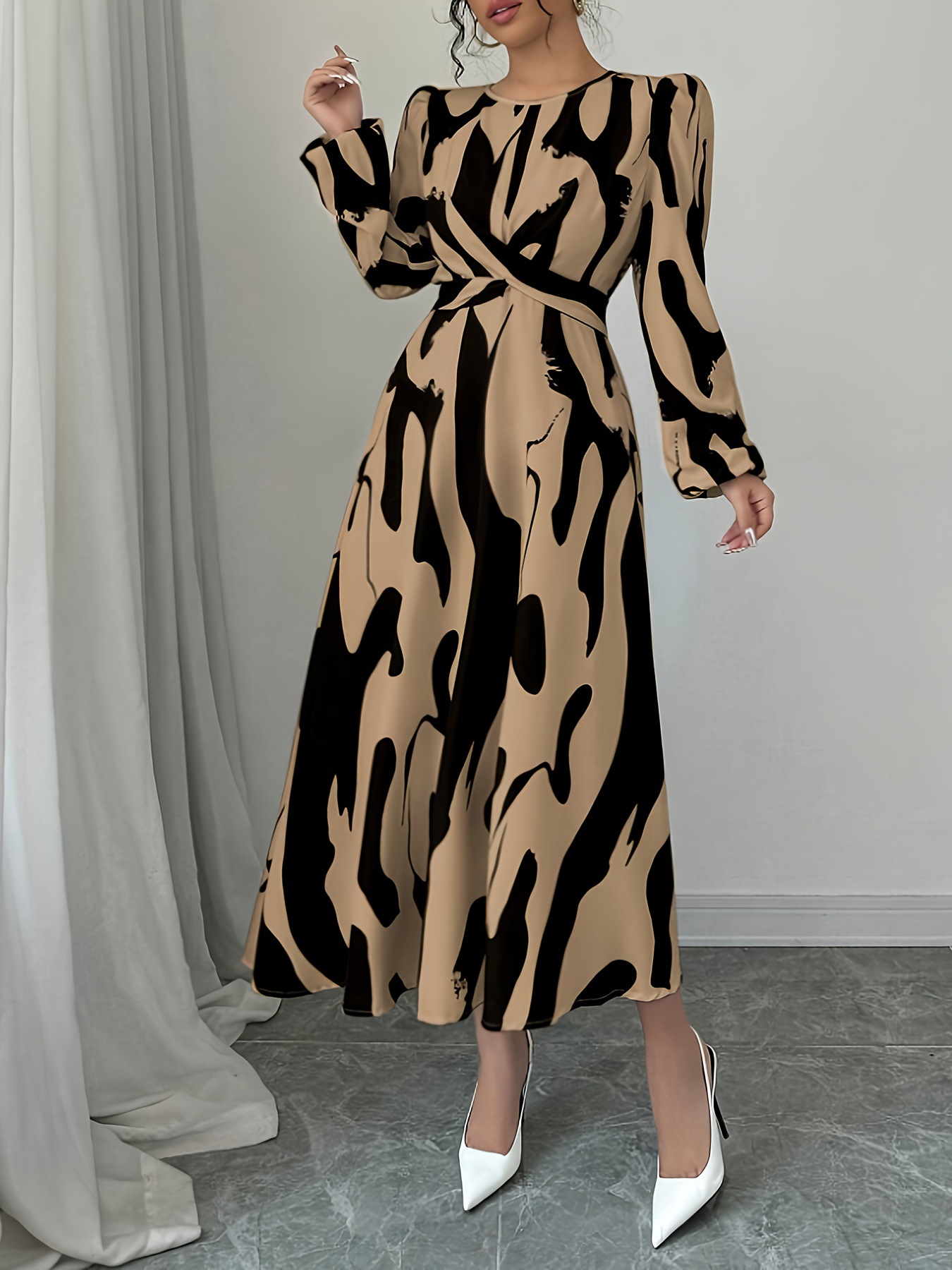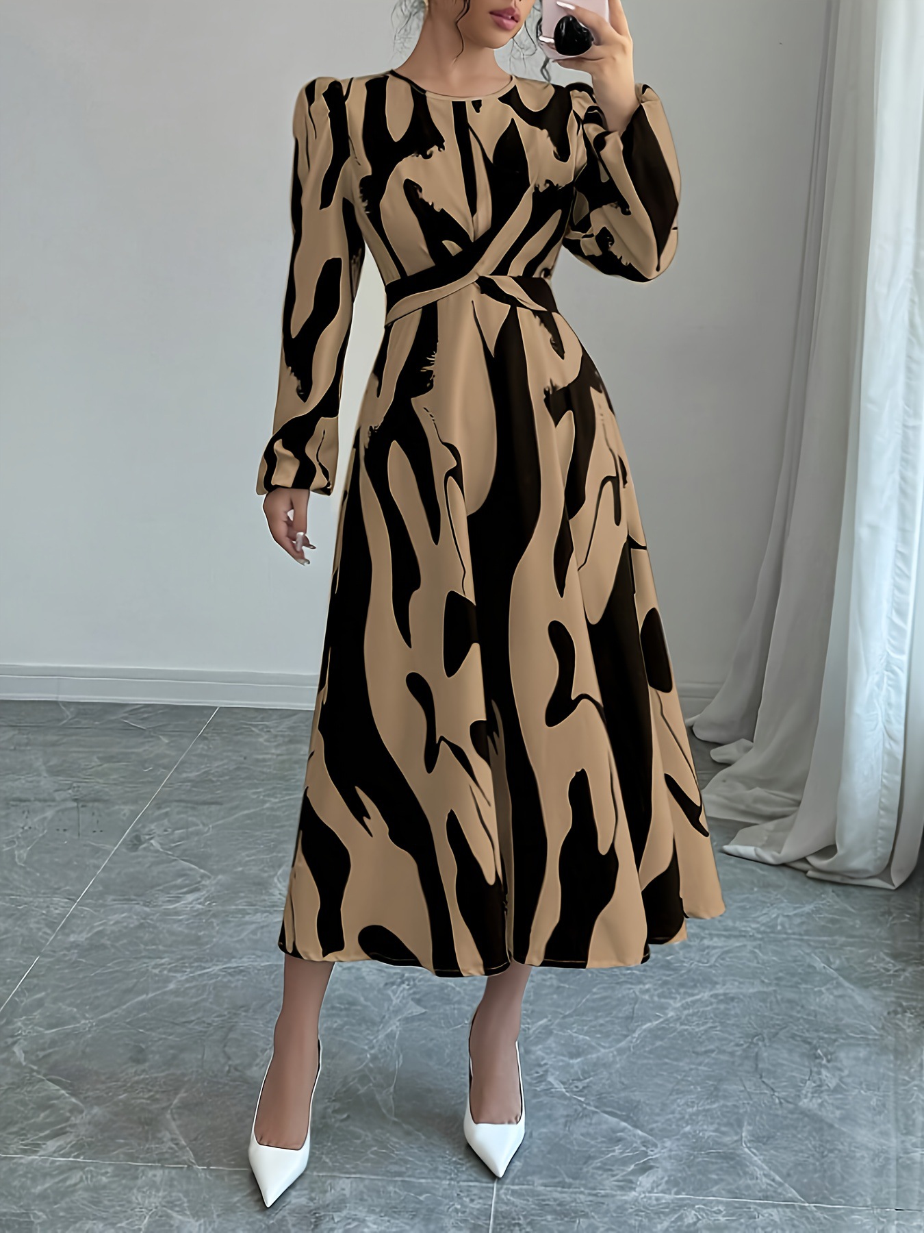 Product information:Color: BrownWaist Style: Adjustable WaistSize: XS, S, M, L, XLSilhouette: A-lineStyle Type: Elegant CommuterCombination: Single PieceSkirt Length: MaxiTrendy Element: ZipperDesign:...