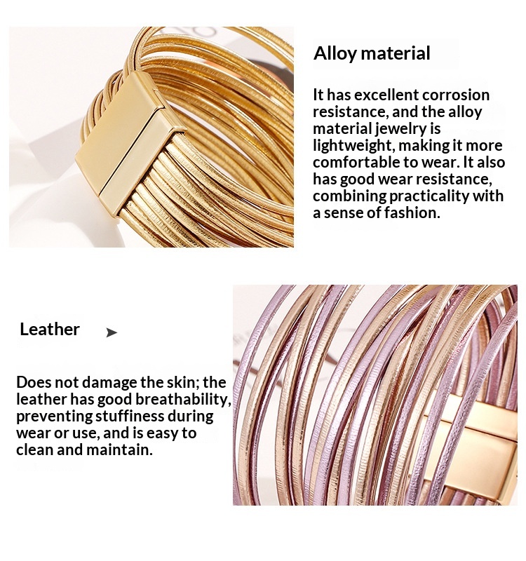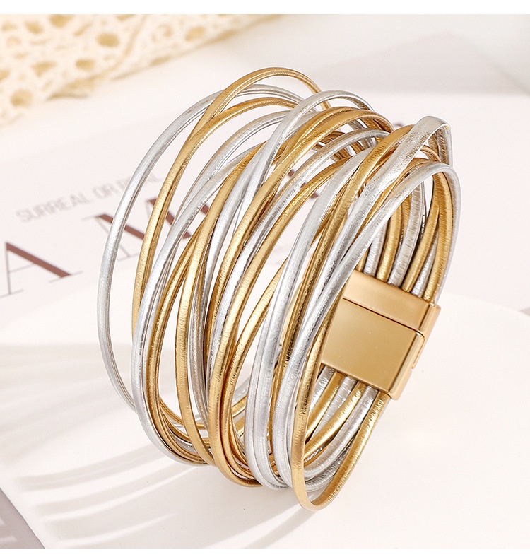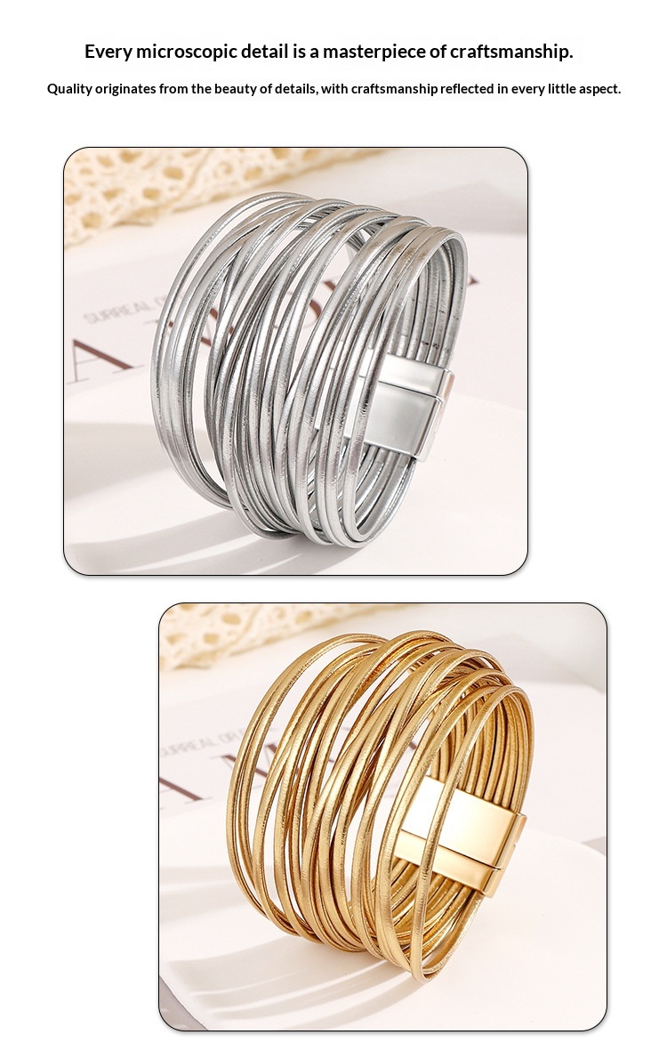 Product information:Processing method: ElectroplatingColors: Gold, silver, gold-silver mix, rose gold, black, black-silver mix, purple + rose gold mixMaterial: Faux leatherTrendy element: LinesStyle:...