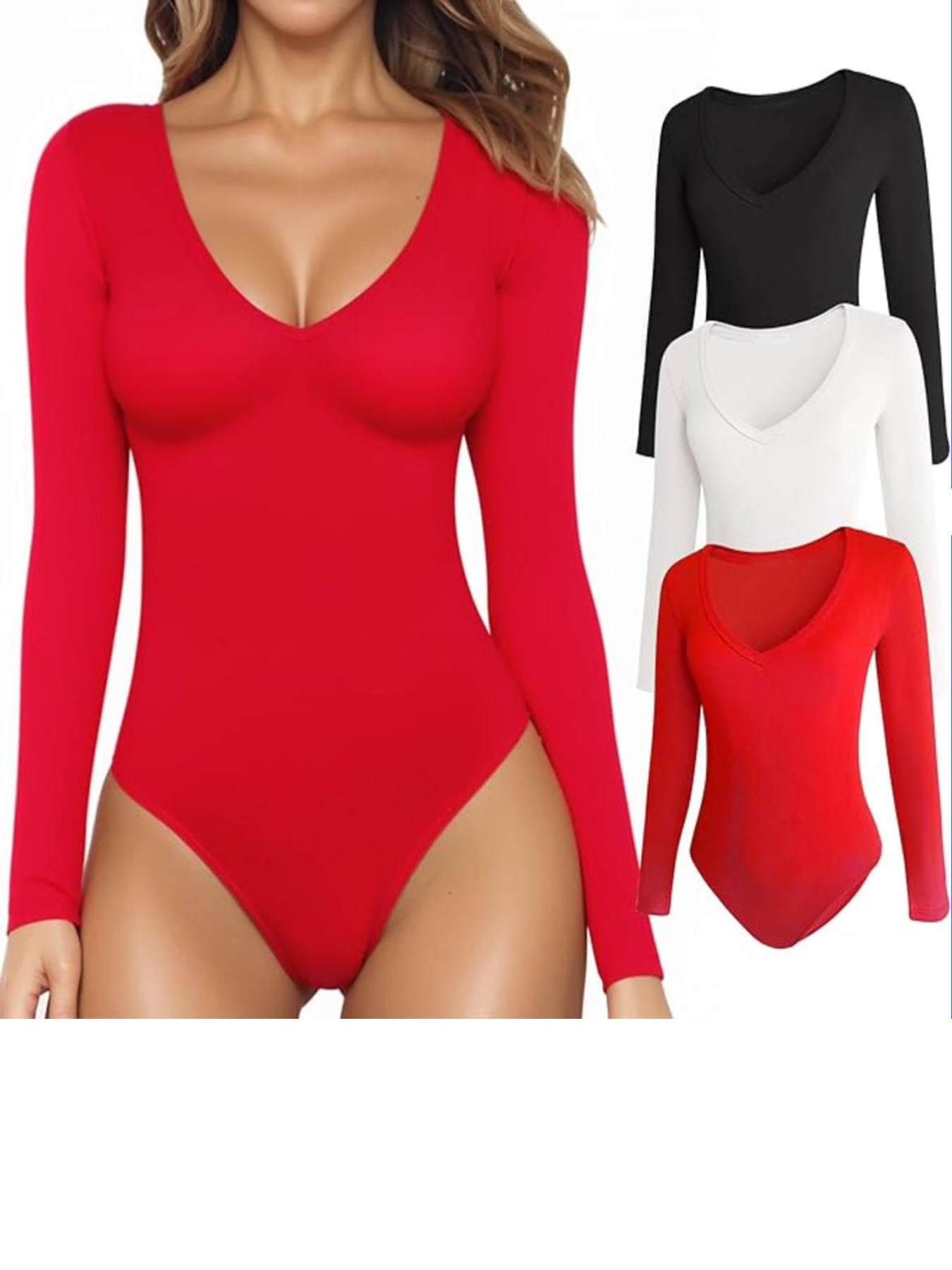Womens Butt-Lifting Body-Shaping Long-Sleeve V-Neck Bodysuit