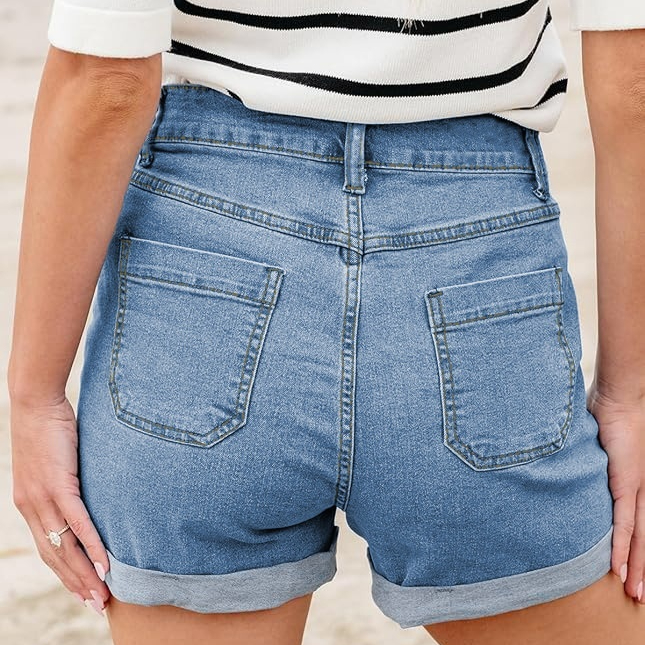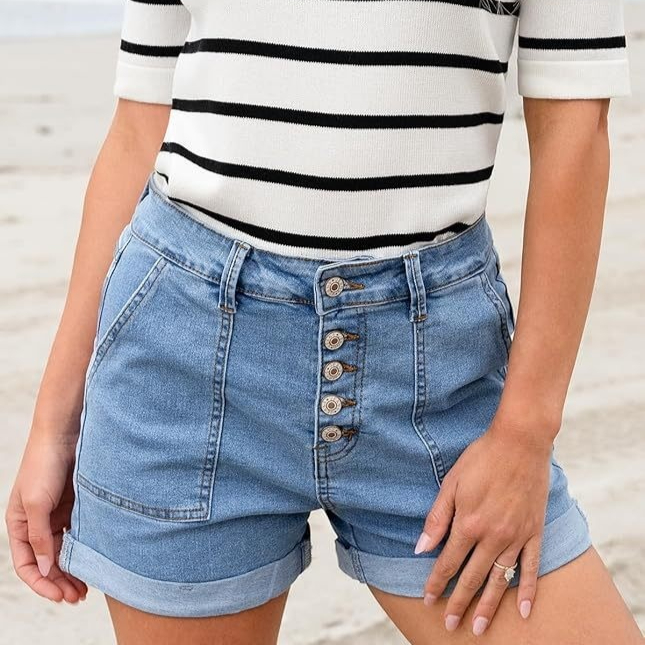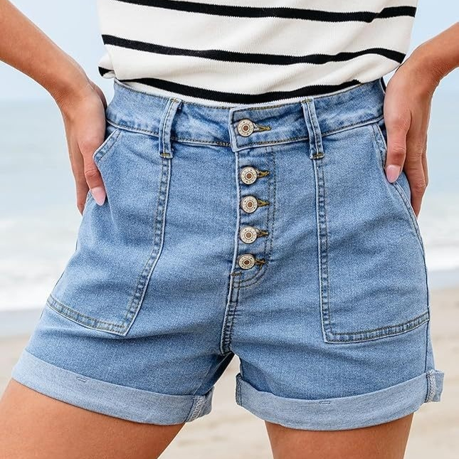 Womens Button-fly High-waist Cuffed Denim Shorts