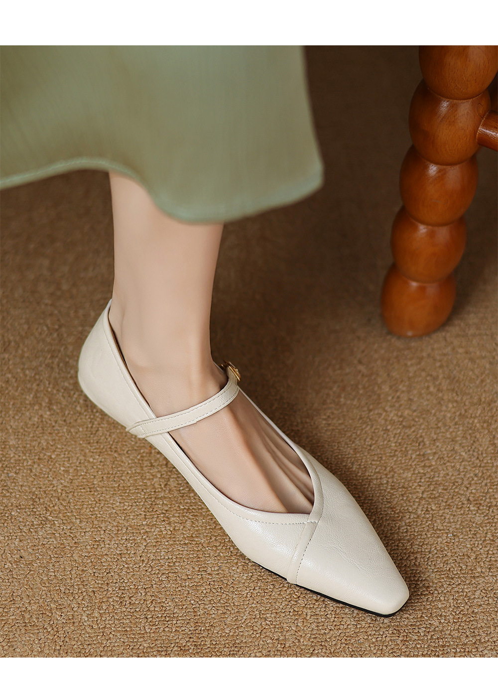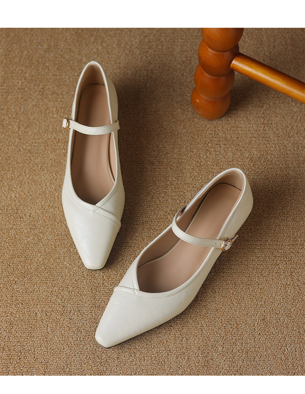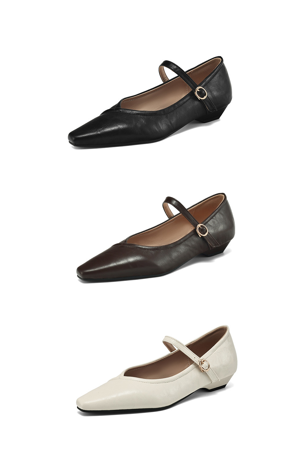 Product information:Pattern: Solid color Inner lining material: Faux leather Colors: Black, off-white, dark brown Shaft height: Low-top Heel height: Low heel (1–3 cm) Heel shape: Square heel Sizes: 34...