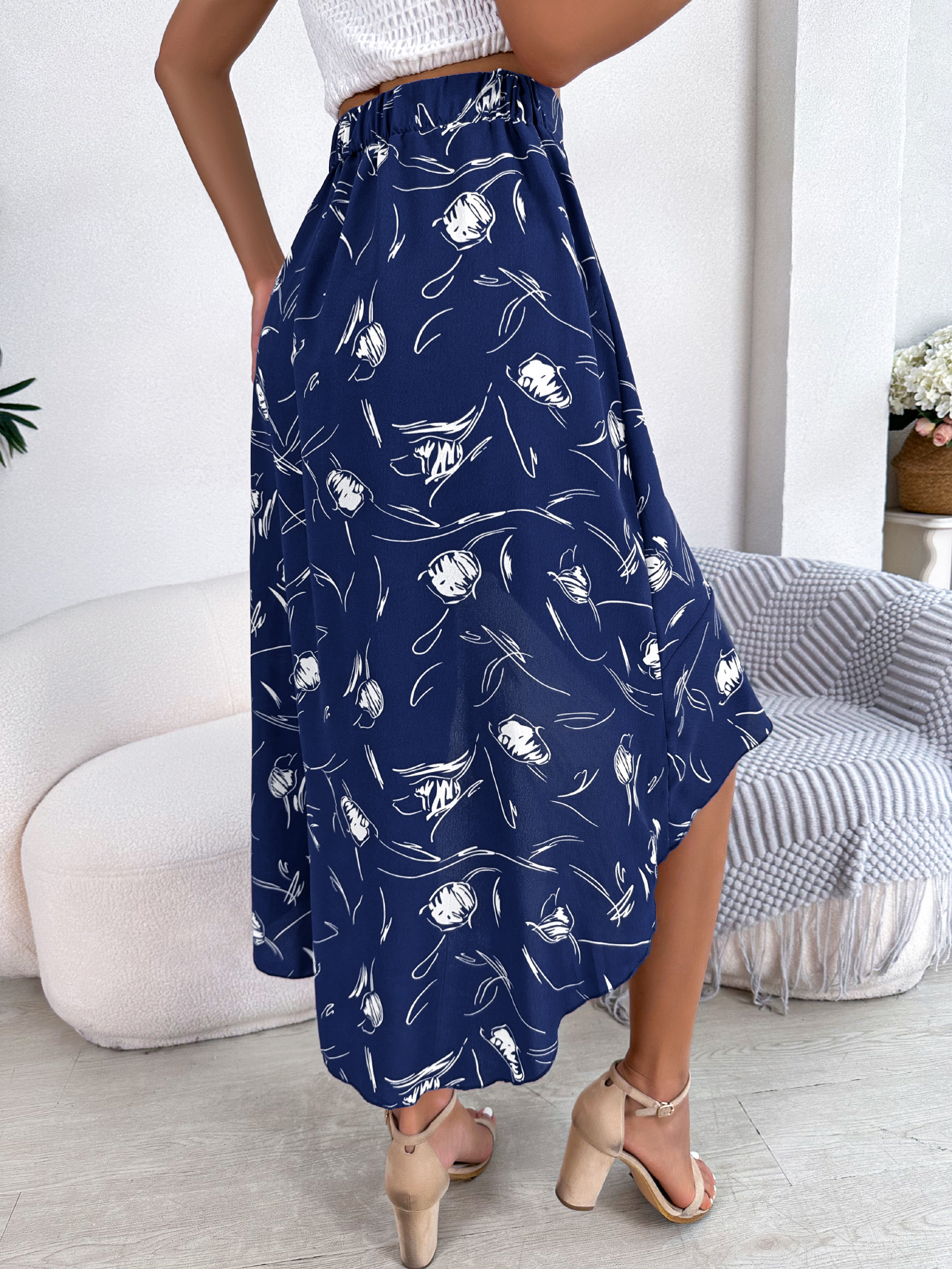 Womens Casual Mid-Length Skirt With Floral Print And Ruffled Hem