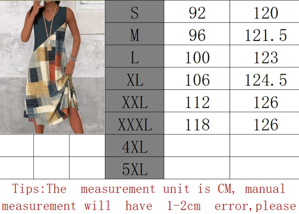 Womens Casual Versatile V-Neck Sleeveless Colorblock Dress