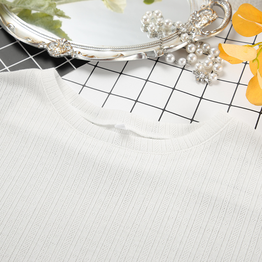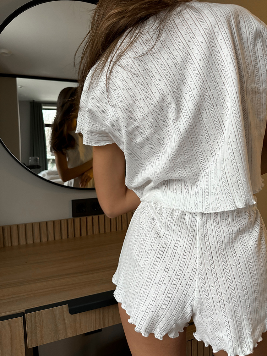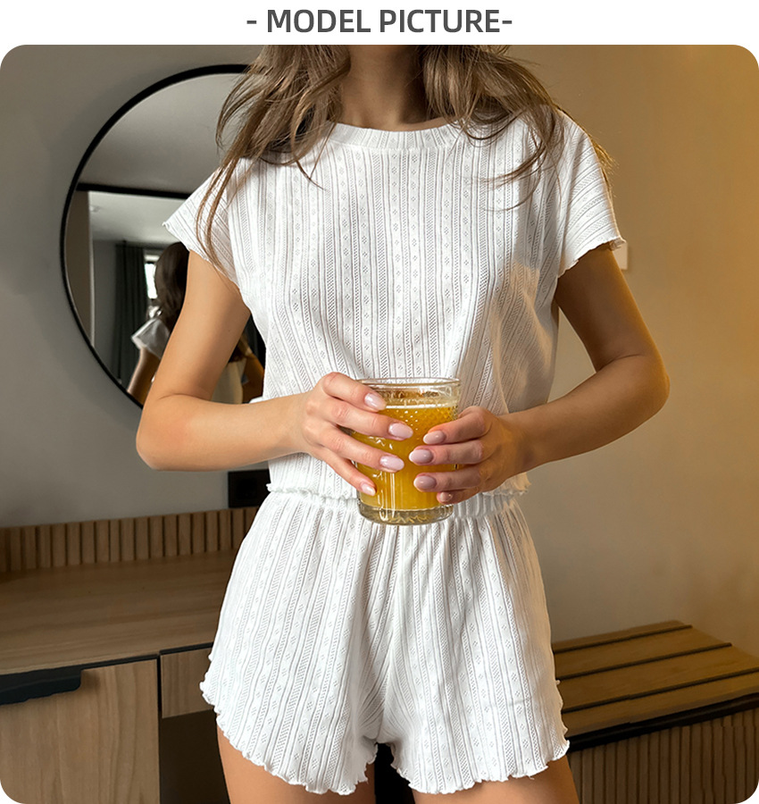 Womens Comfortable New Breathable Short-Sleeve Hollow-Out Jacquard Pajamas