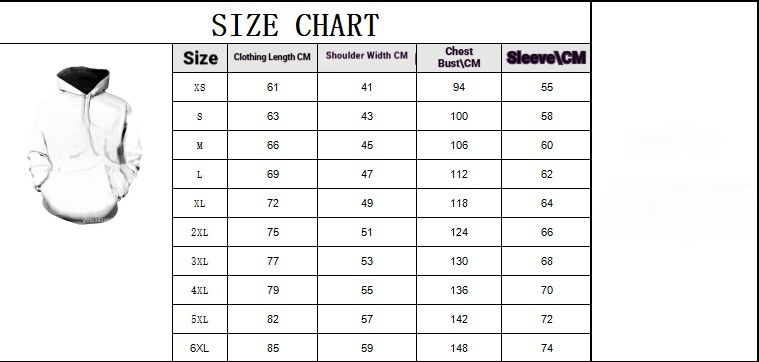 Sizes: S, M, L, XL, 2XL, 3XL, 4XL, 5XL, 6XL