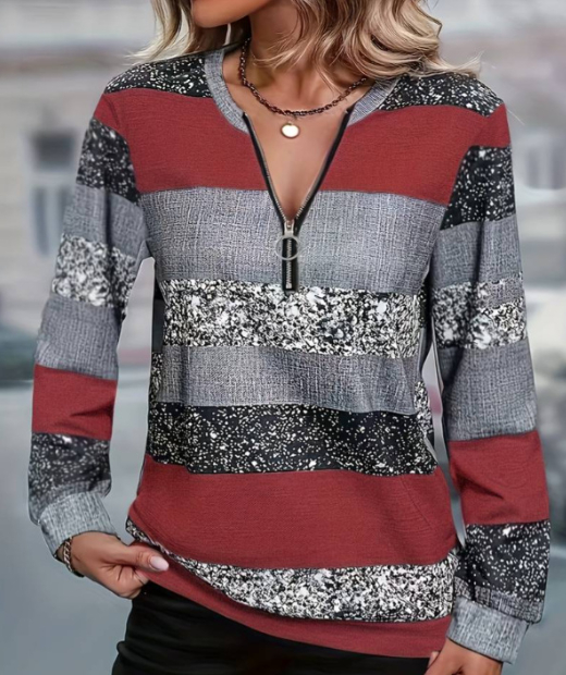 Womens FallWinter Crew-Neck Printed Loose-Fit Zip-Up Hoodie With Long Sleeves