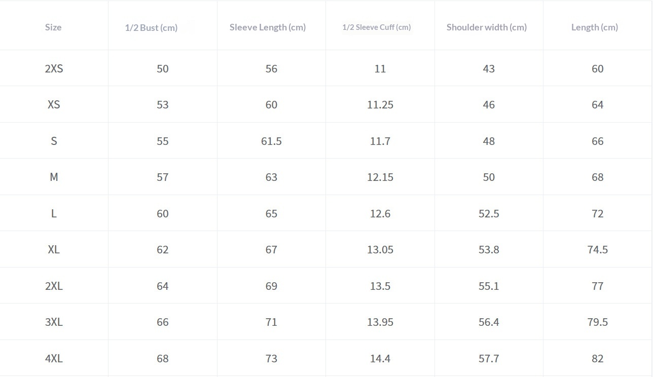 Sizes: XS, S, M, L, XL, 2XL, 3XL, 4XL, XXS
