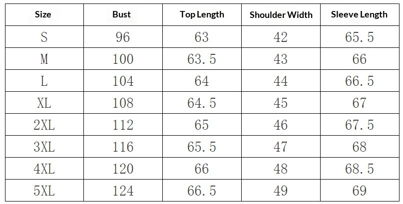 Sizes: S, M, L, XL, 2XL, 3XL, 4XL, 5XL