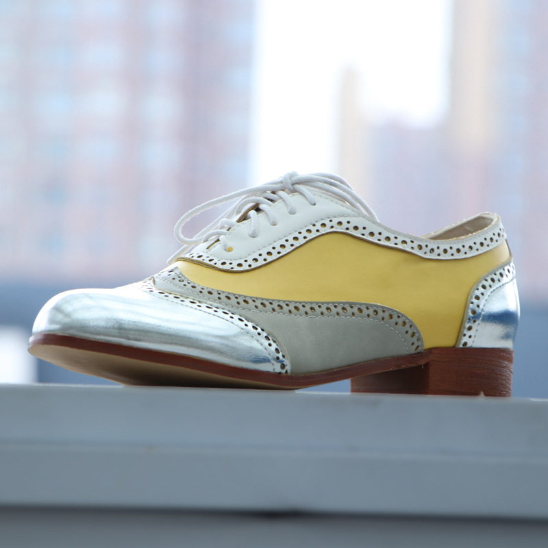 Womens Fashionable Low-block-heeled Pumps With A Round Toe And Front Lacing