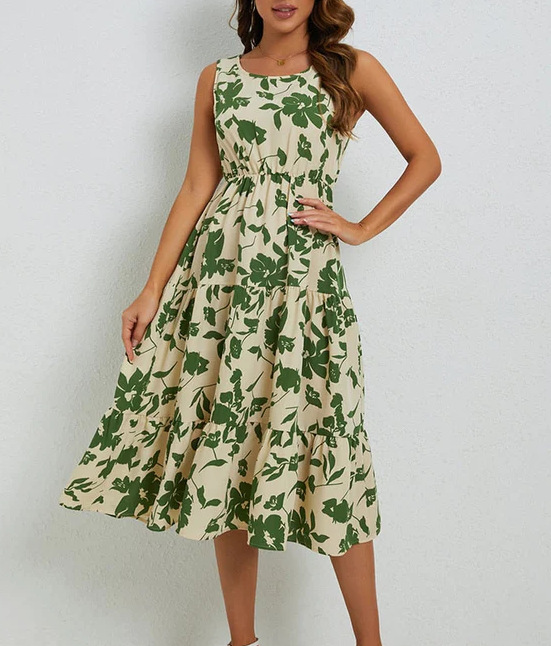 Womens Floral-Print Sleeveless Mid-Length Wrap Dress For Vacation Style
