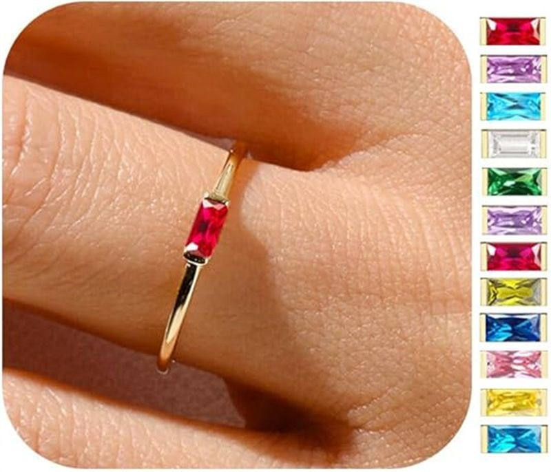 Womens Gold-plated Colorful Square-cut Ring In A Non-fading Rectangular Design