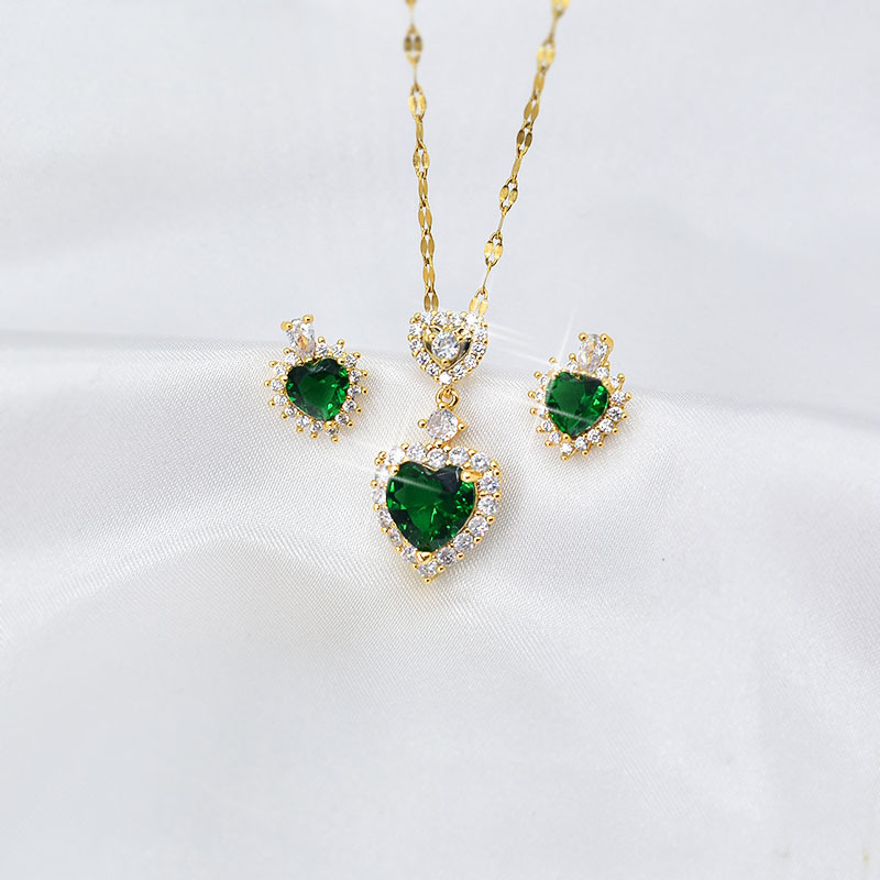 Women's Green Zircon Heart Set Necklace