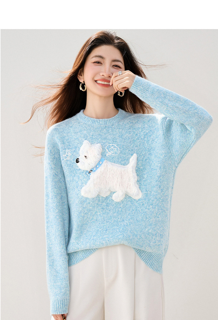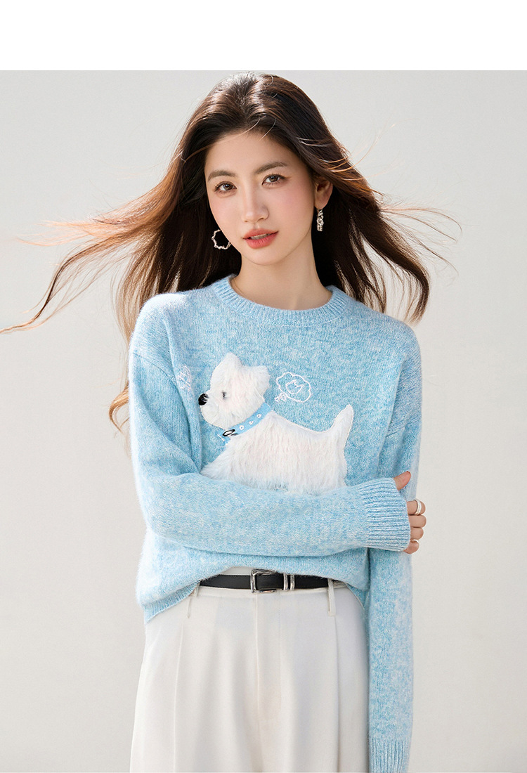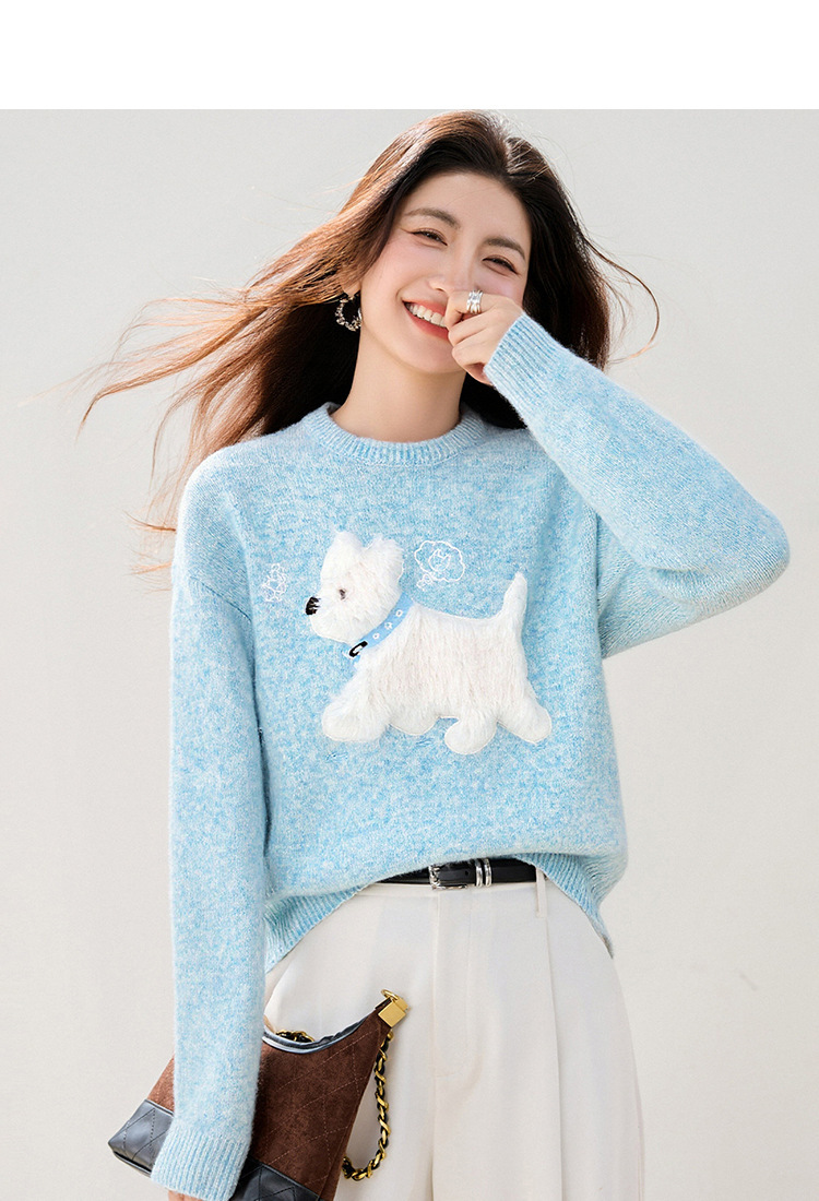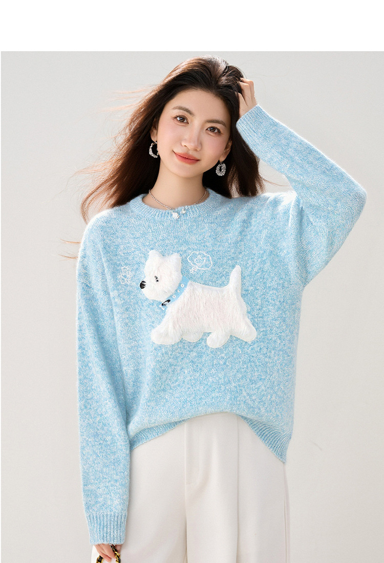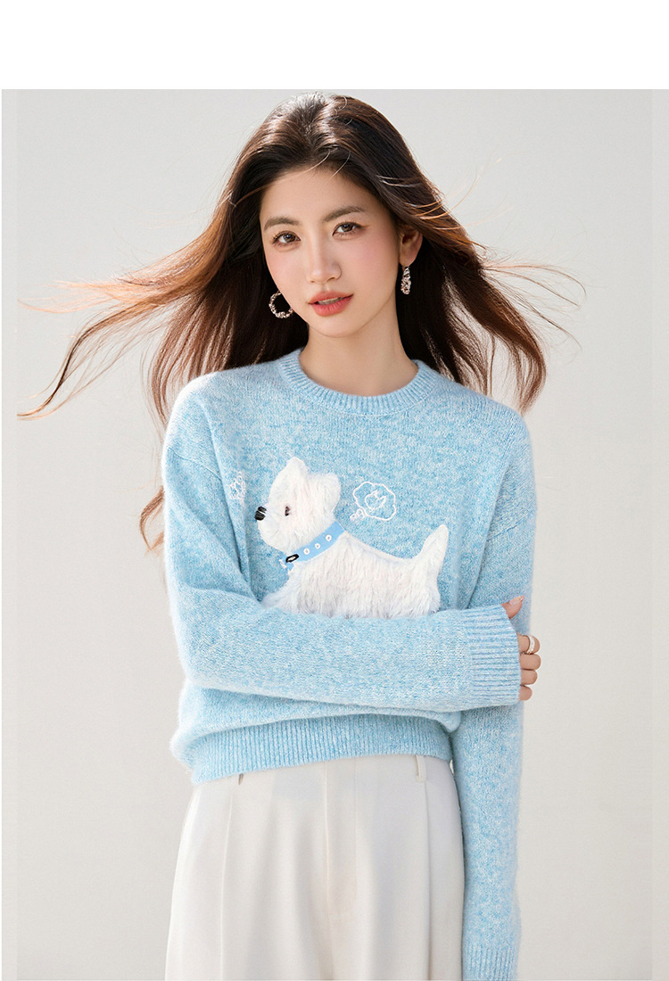 Womens Light Blue Sweet Knit Sweater For Girls
