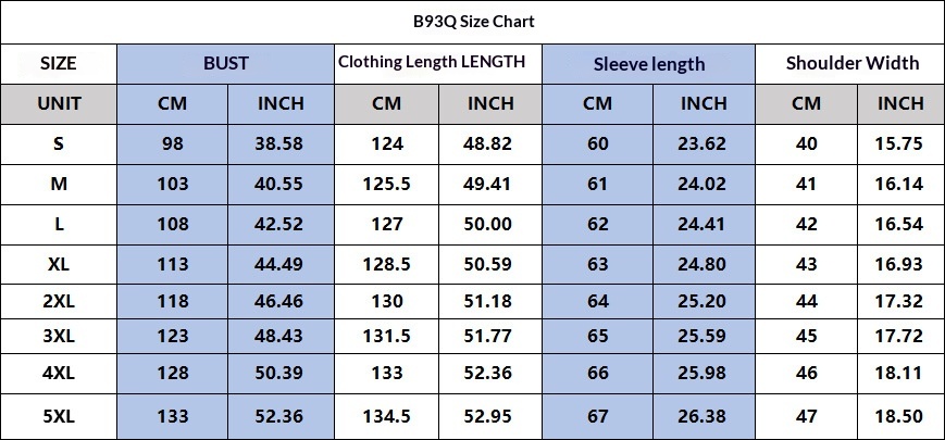 Sizes: S, M, L, XL, 2XL, 3XL, 4XL, 5XL