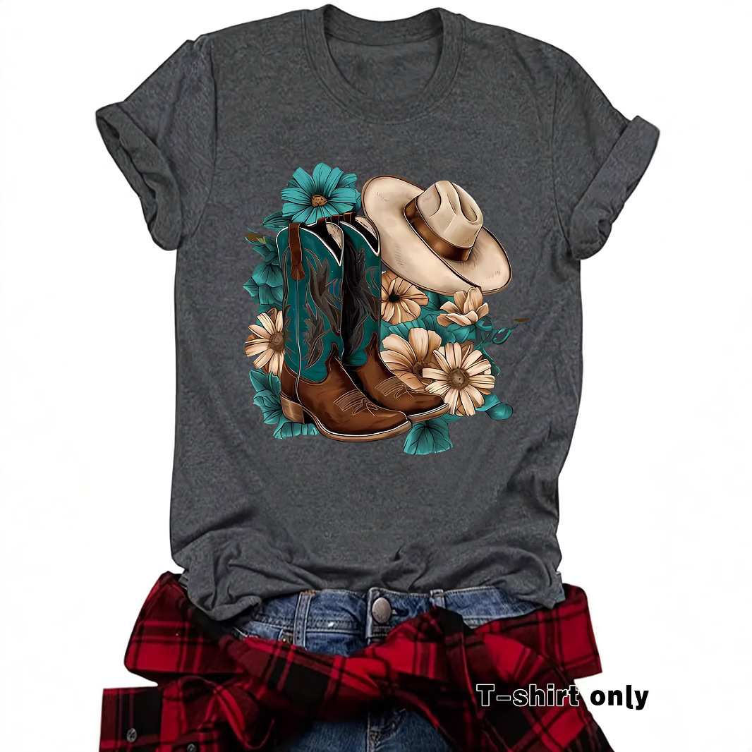 Womens Loose-fitting Fashionable Boots With A Hat Print And Short Sleeves