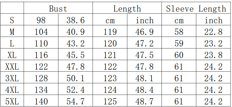 Sizes: S, M, L, XL, 2XL, 3XL, 4XL, 5XL
