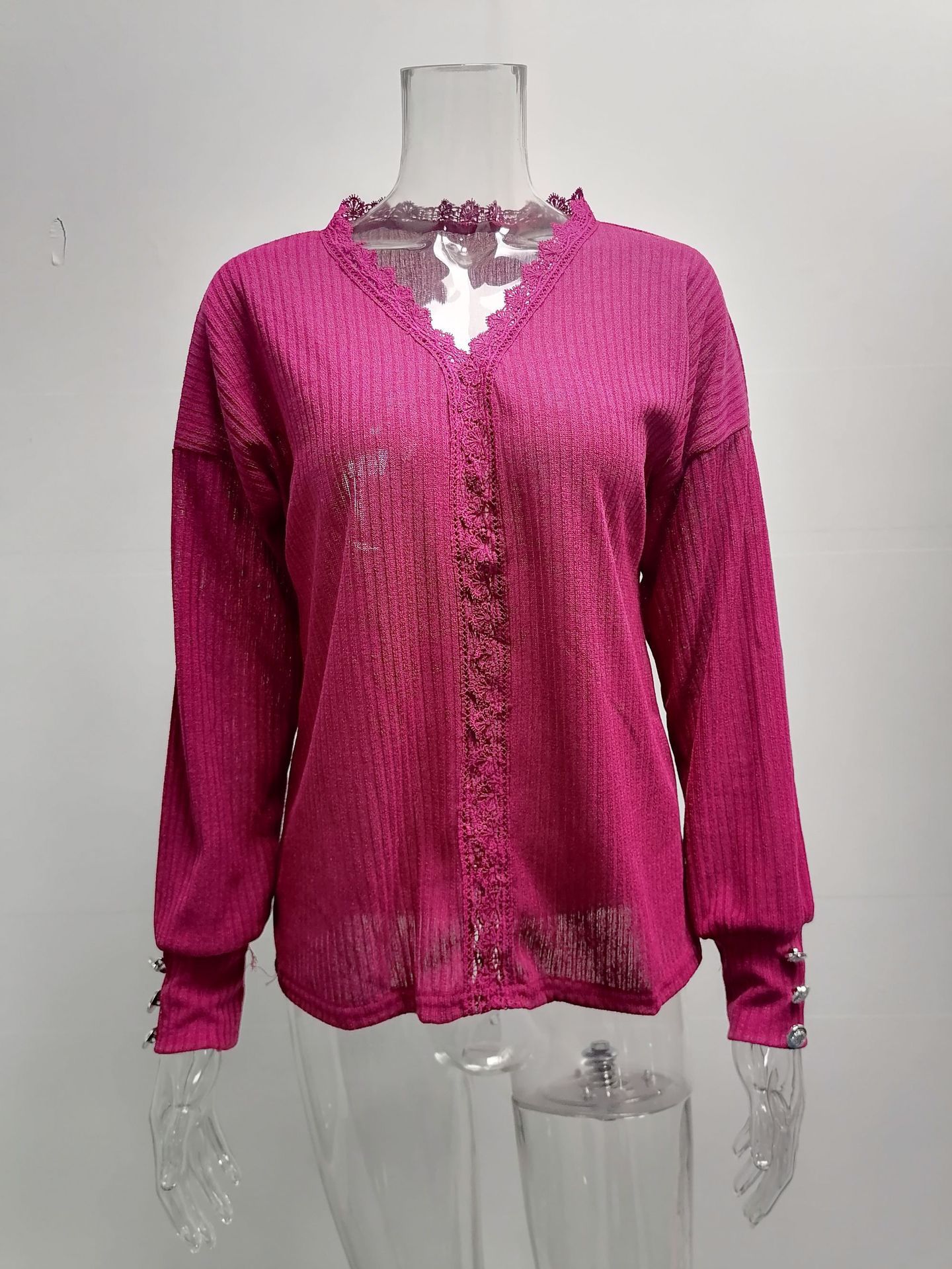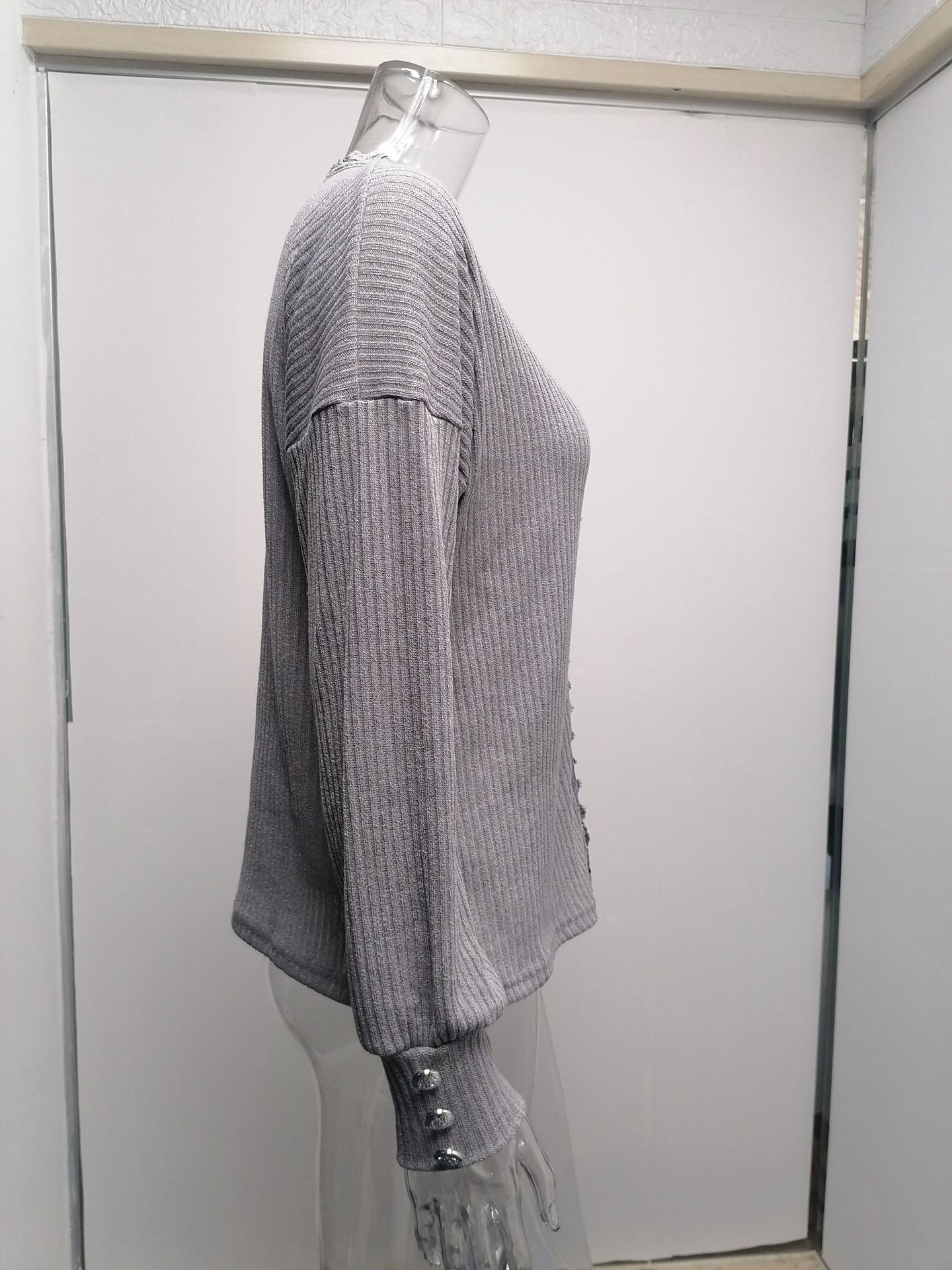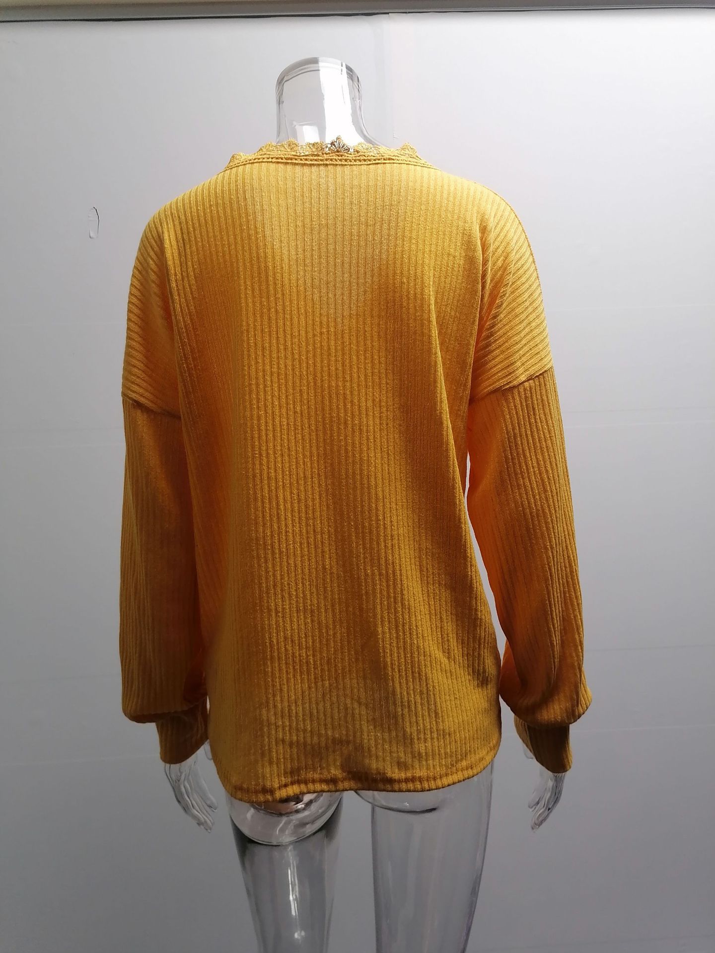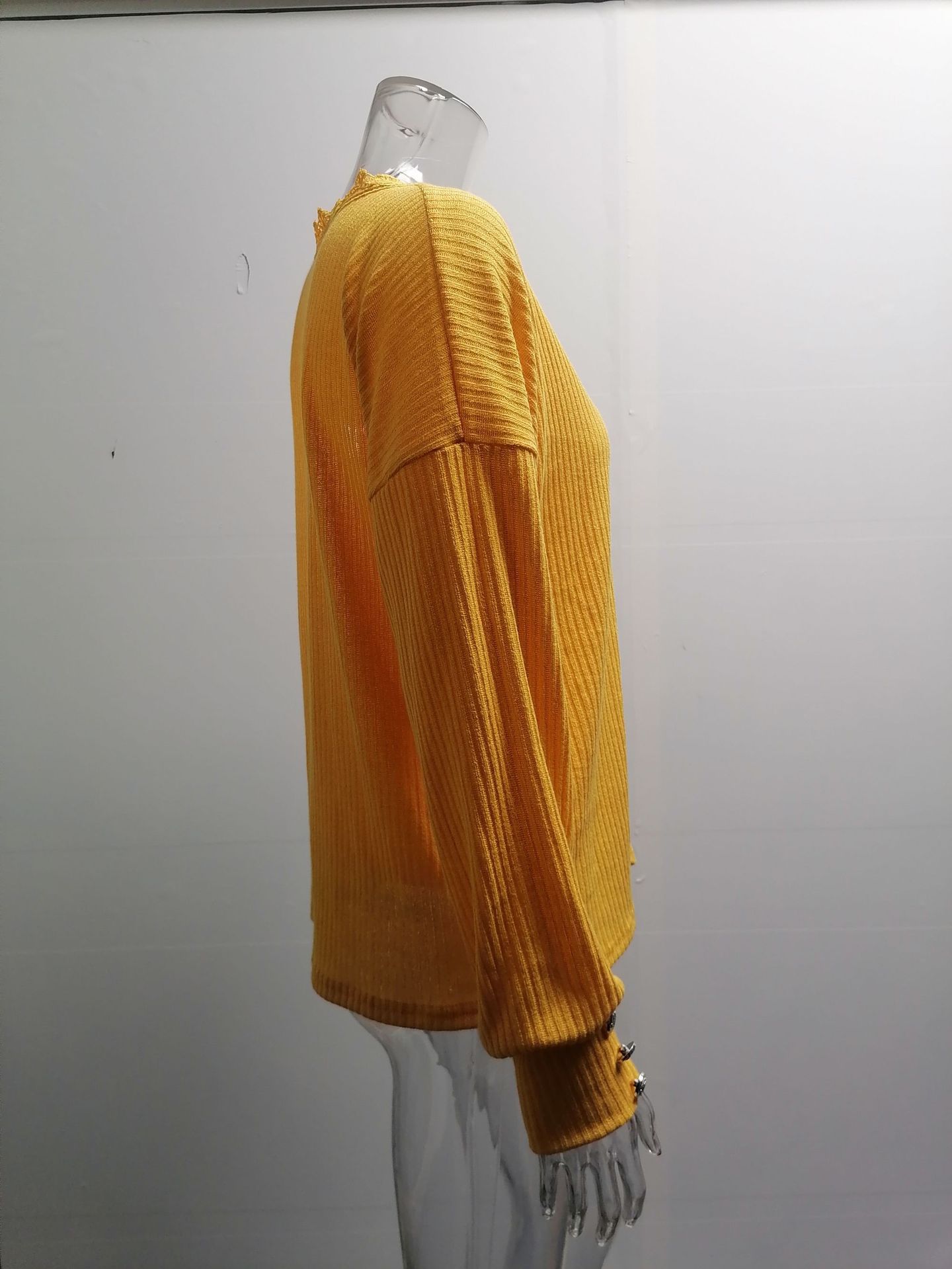 Womens Loose-fitting Long-sleeve Solid-color Sweater