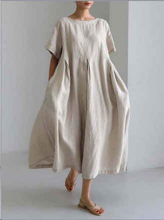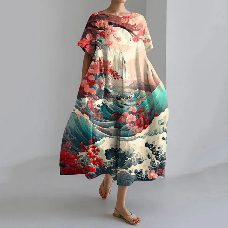 Women's Loose Round Neck Fashion Premium Short Sleeve Printed Dress