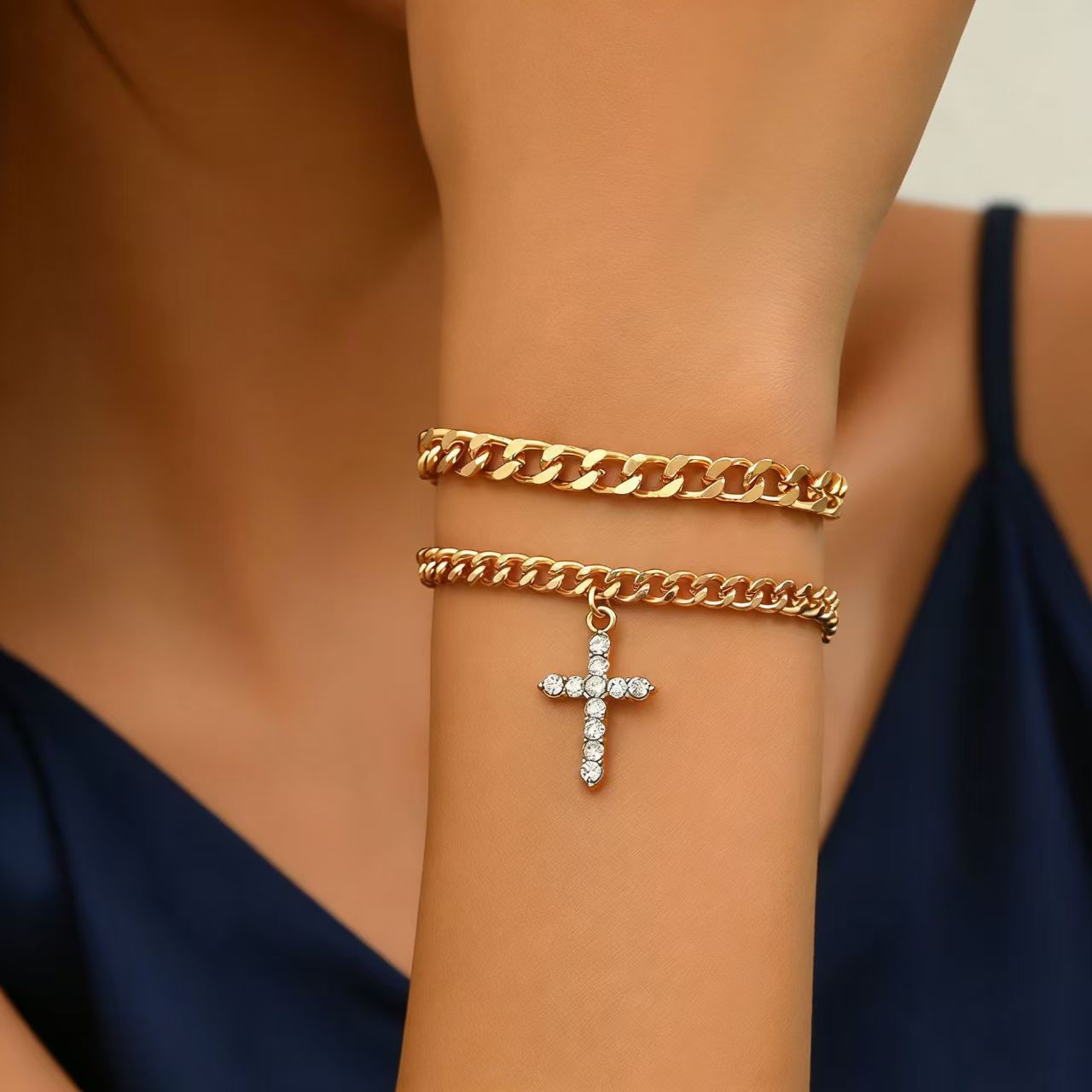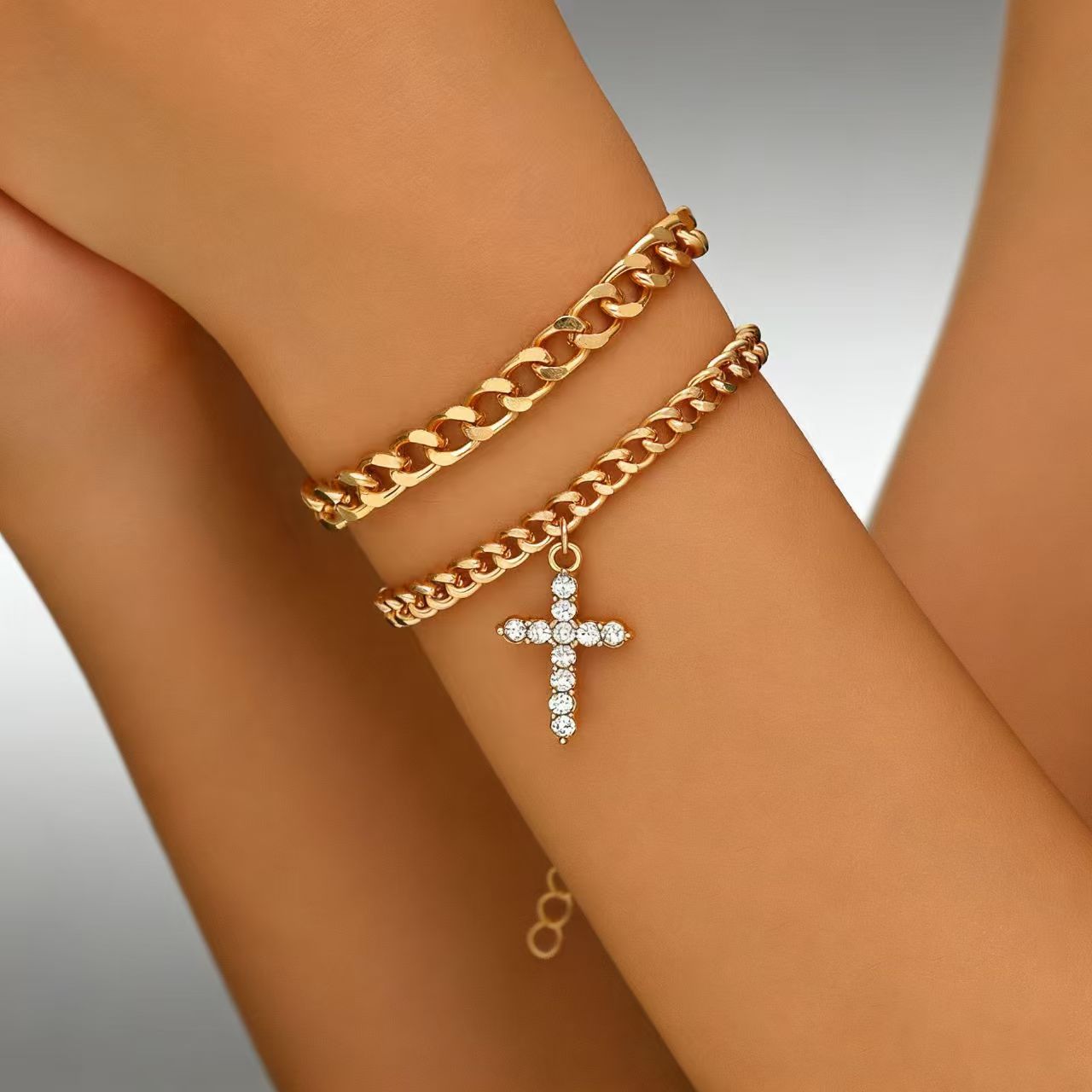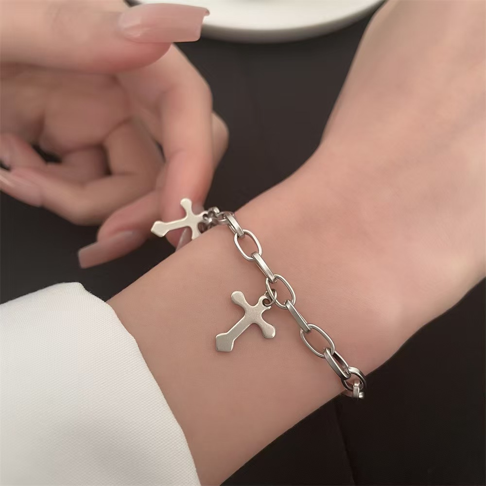 Product information:Processing Method: Electroplating Color: Style 5 Material: Alloy Design: Geometric Trendy Element: Cross Packing list: Bracelet *1+ Earrings pair Product Image: