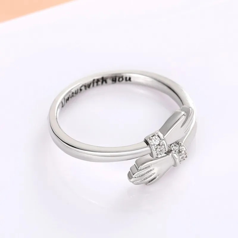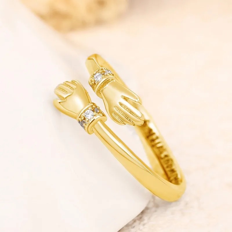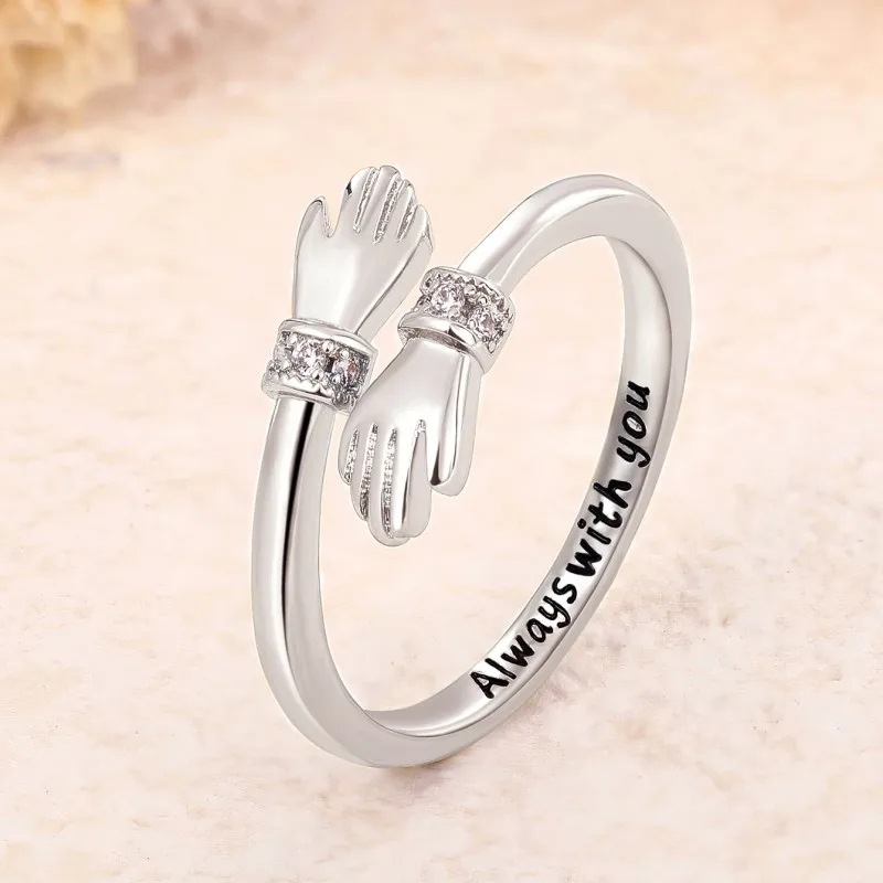 Womens Open Adjustable Ring With A Double-hand Embrace Design
