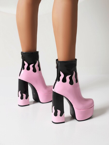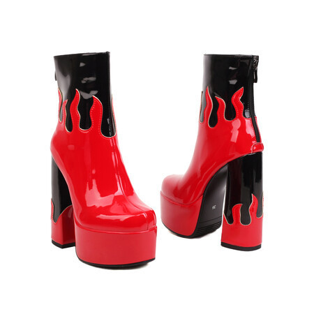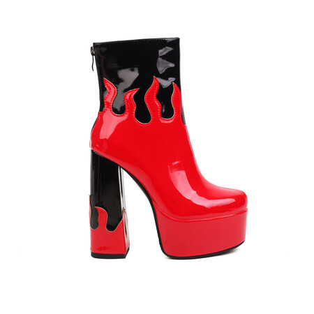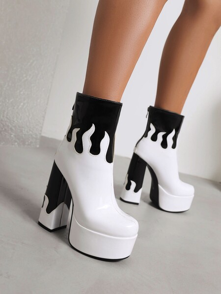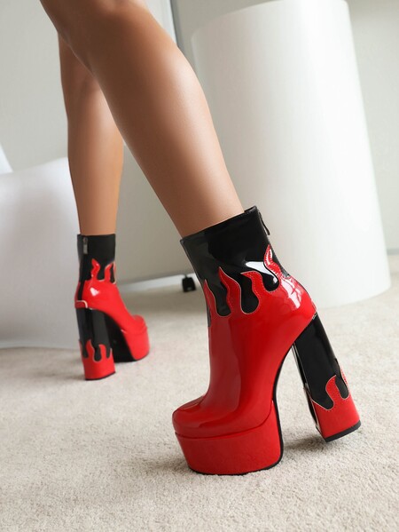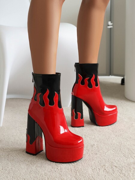 Womens Patent Leather Colorblock Ankle Boots