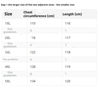 Sizes: 1XL, 2XL, 3XL, 4XL, 5XL