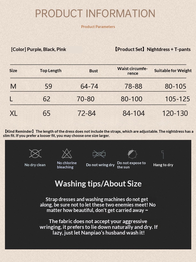 Product information:Thickness: Medium Fabric Name: Imitation Silk Colors: Purple, Black, Pink, Burgundy Main Fabric Composition: Polyester Fiber Gender: Women’s Sizes: M, L, XL Features: Casual, breat...