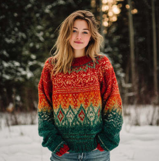 Womens Printed Crew-Neck Sweatshirt In A Sweater-Look Style
