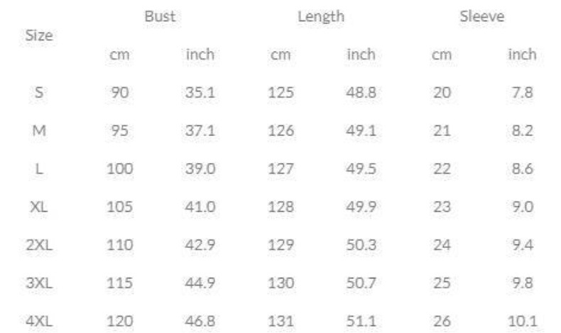 Sizes: S, M, L, XL, XXL, XXXL, 4XL, 5XL