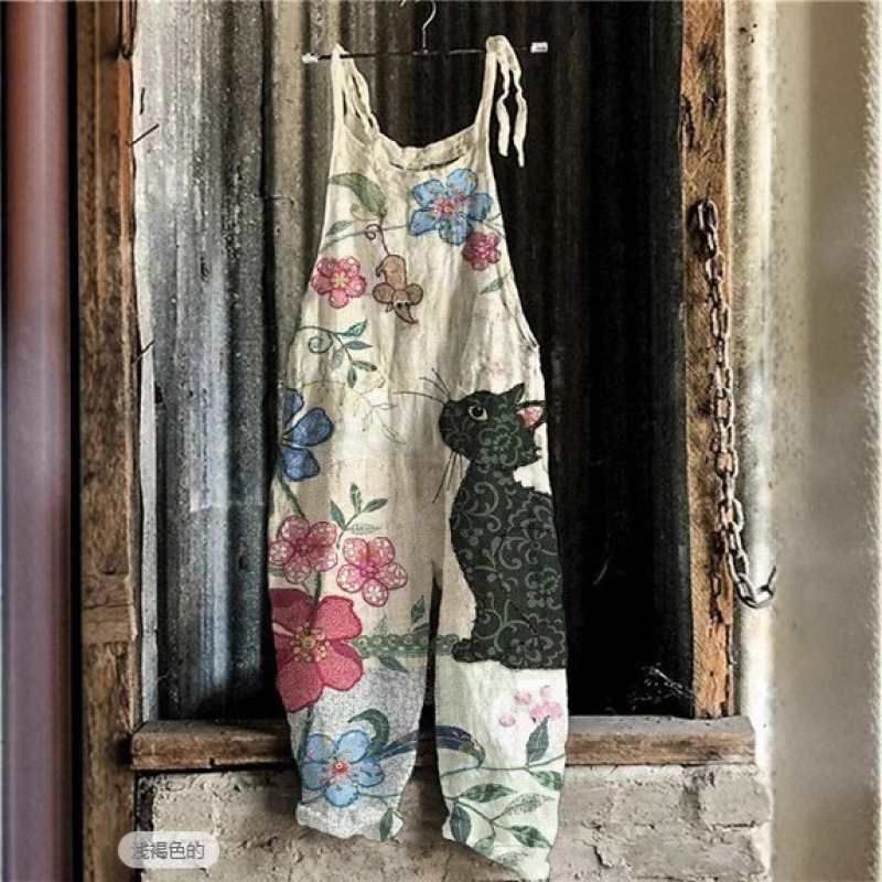 Womens Retro Sleeveless Jumpsuit With Floral Print And Suspender Straps