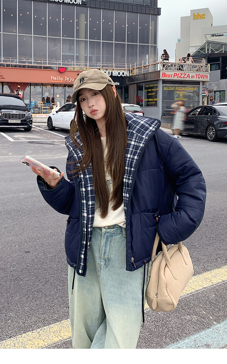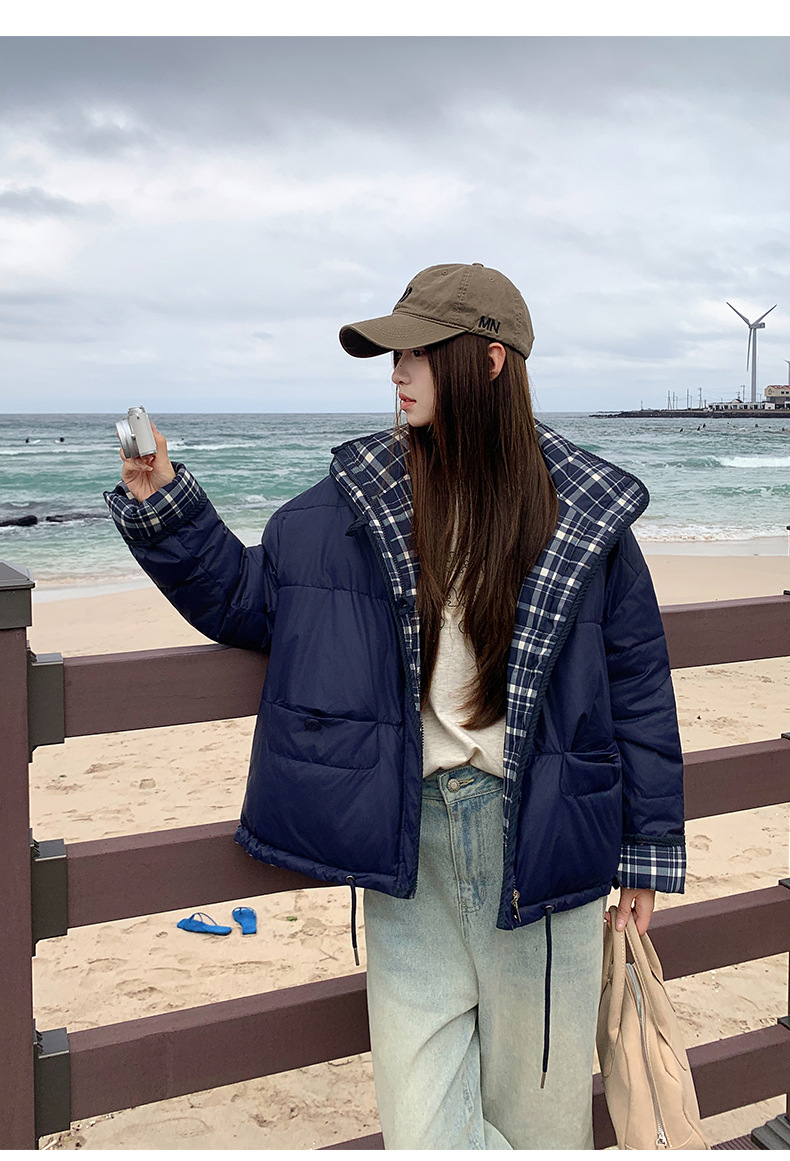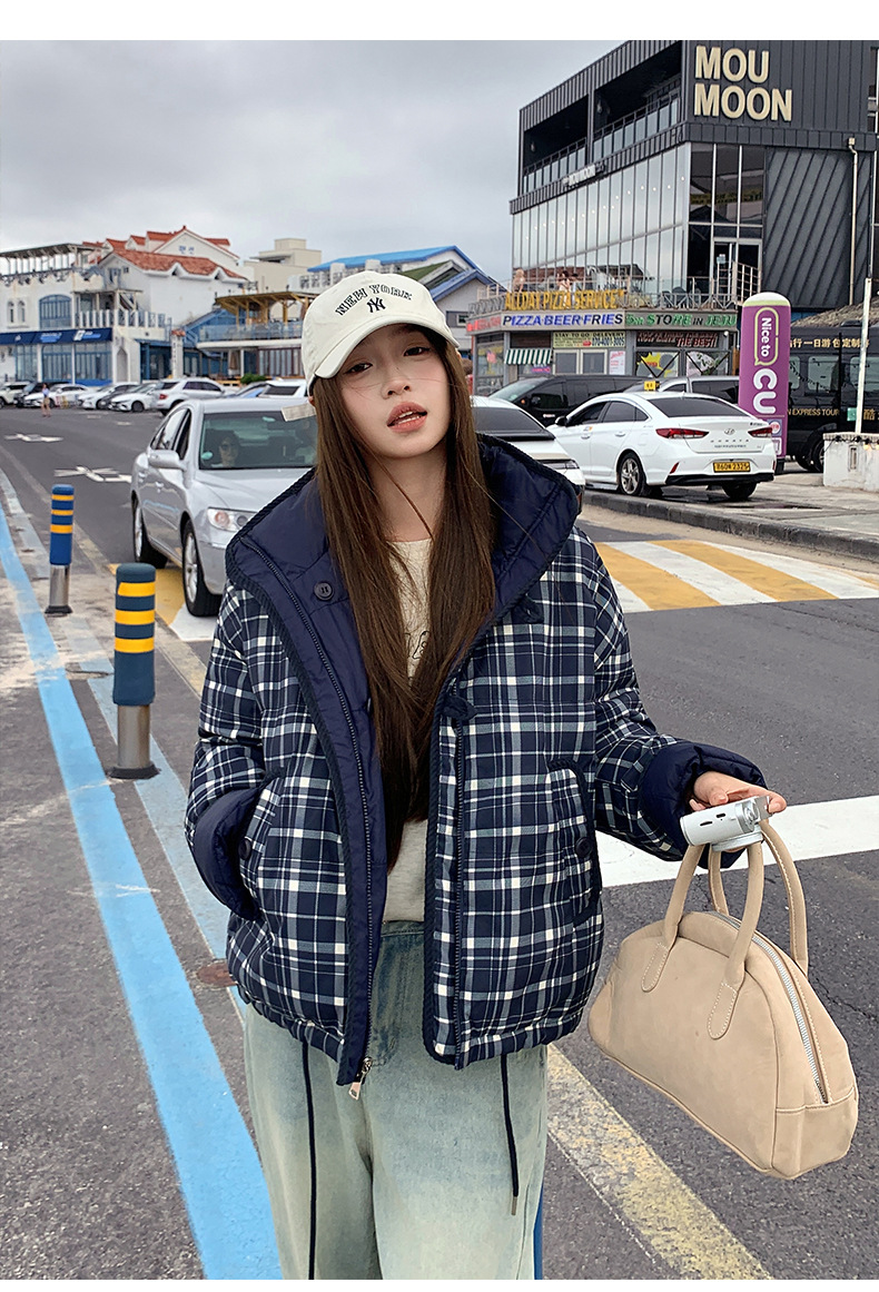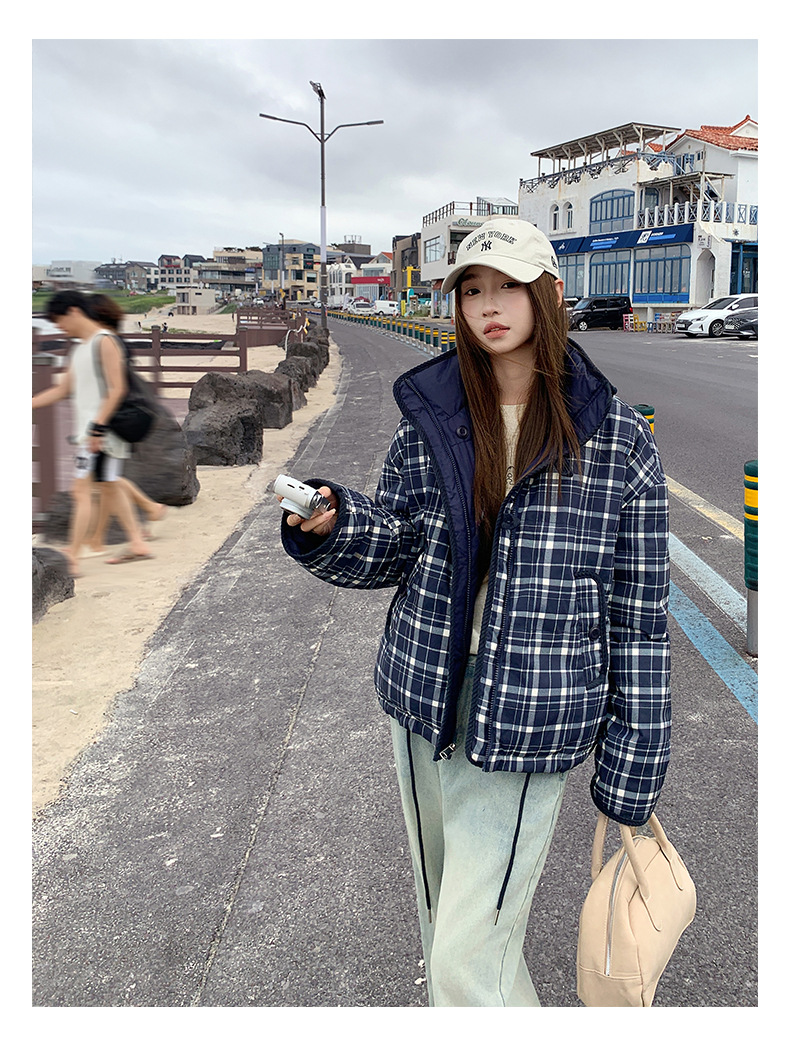 Product information:Pattern: Geometric patternColors: Small plaid, large plaid, blue plaidSizes: S, M, L, XLFit: Regular fitStyle Type: Elegant CommuterFur Collar: No fur collarTrendy Element: Pockets...