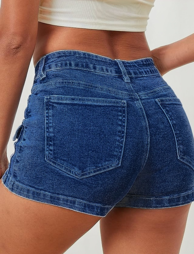 Womens Solid-Color High-Waist Slim-Fit Denim Shorts