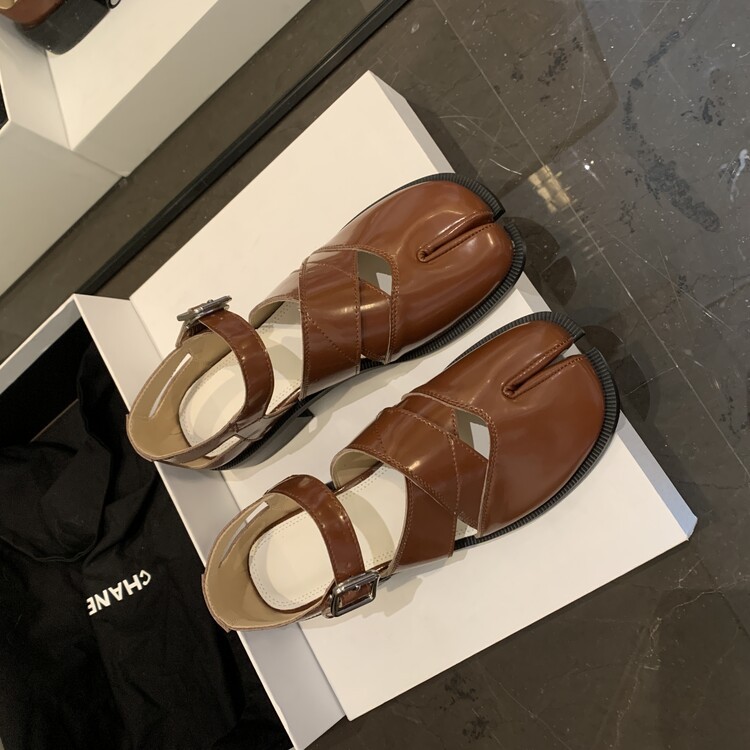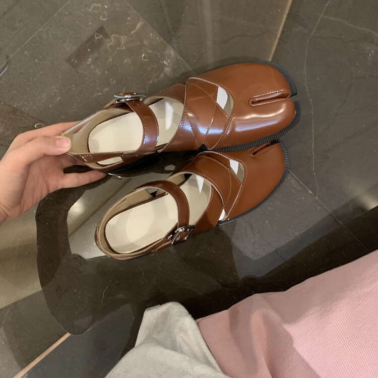 Women's Split-toe Hollow-out Flat Leather Shoes