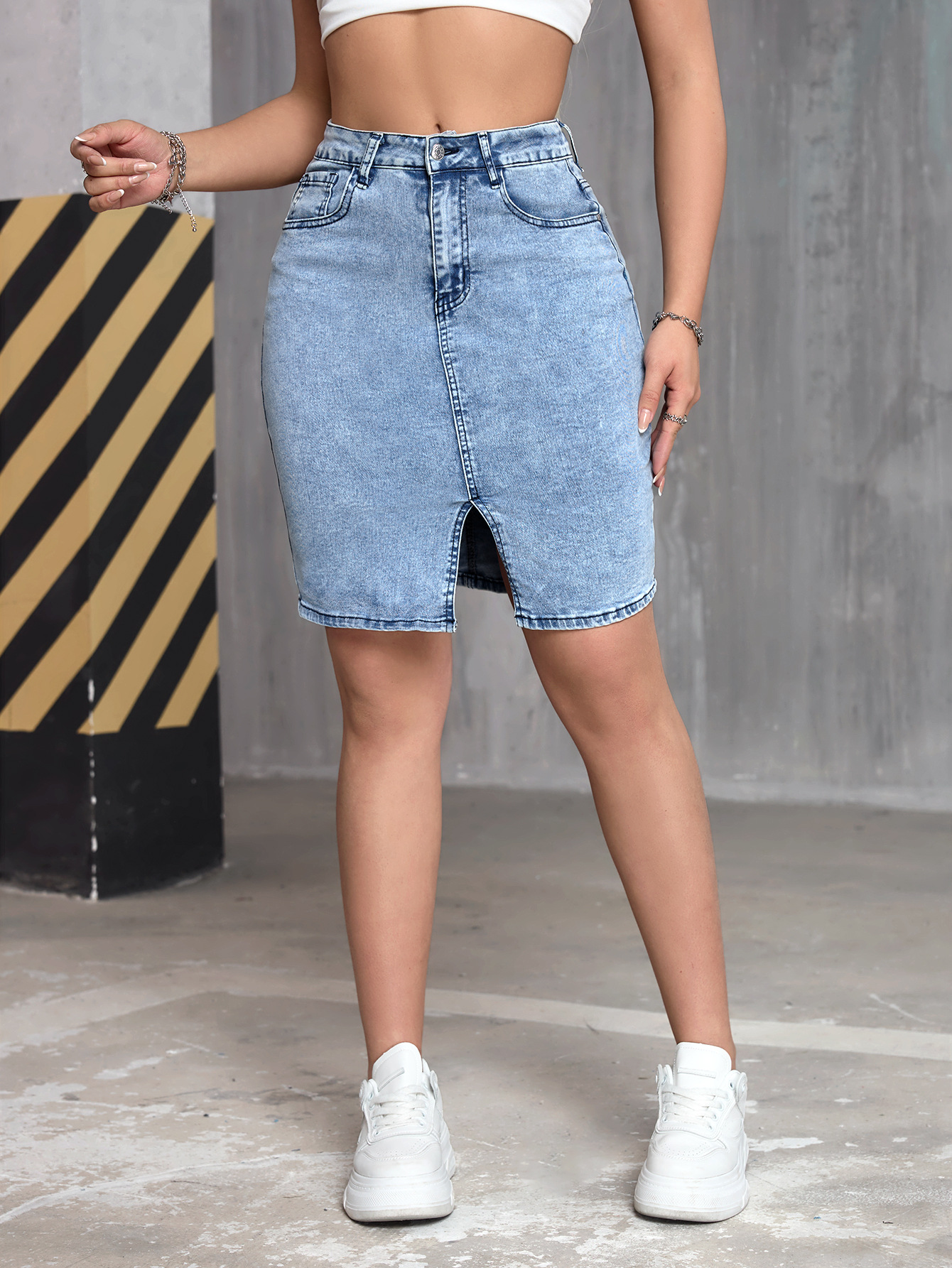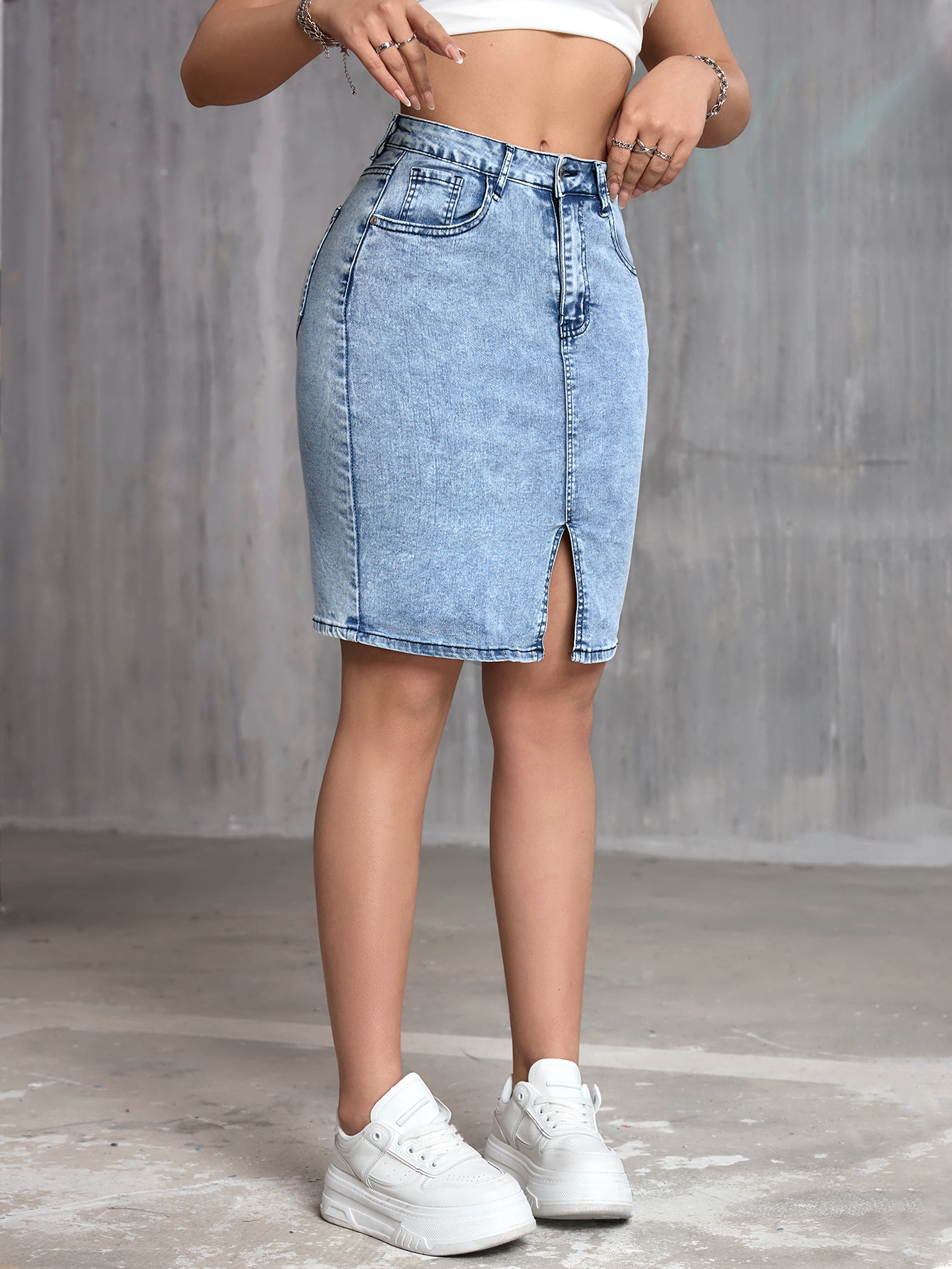 Womens Stretchy Slit Denim Skirt