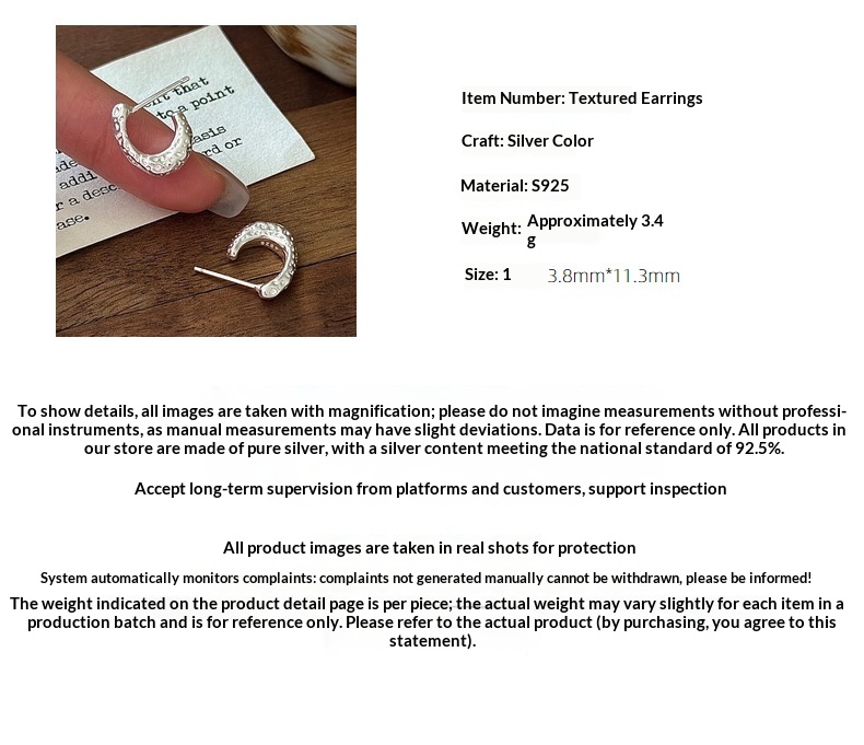 Product information:Processing Technique: Electroplating Colors: Gold, Silver Material: 925 Sterling Silver Purity: 925 Silver Shape: Geometric Trendy Element: Irregular Style: Instagram-inspired P...