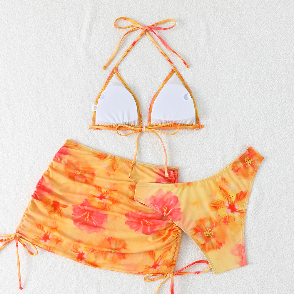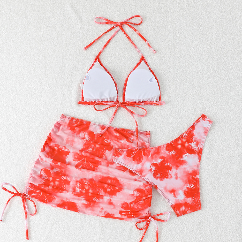 Womens Two-Piece Bikini Beach Vacation Swimsuit Three-Piece Swimwear Set