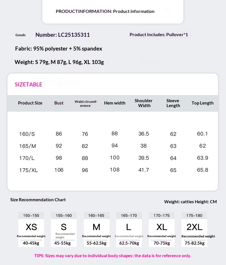 Product information:Fabric: Polyester Sleeve Style: Regular sleeves Stretch: Slight stretch Sizes: S, M, L, XL Fit: Slim fit Length: Regular length (50 cm < length ≤ 65 cm) Sleeve Length: Long slee...